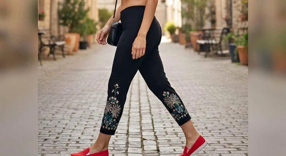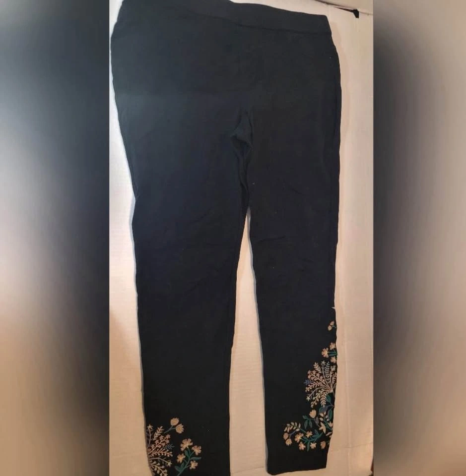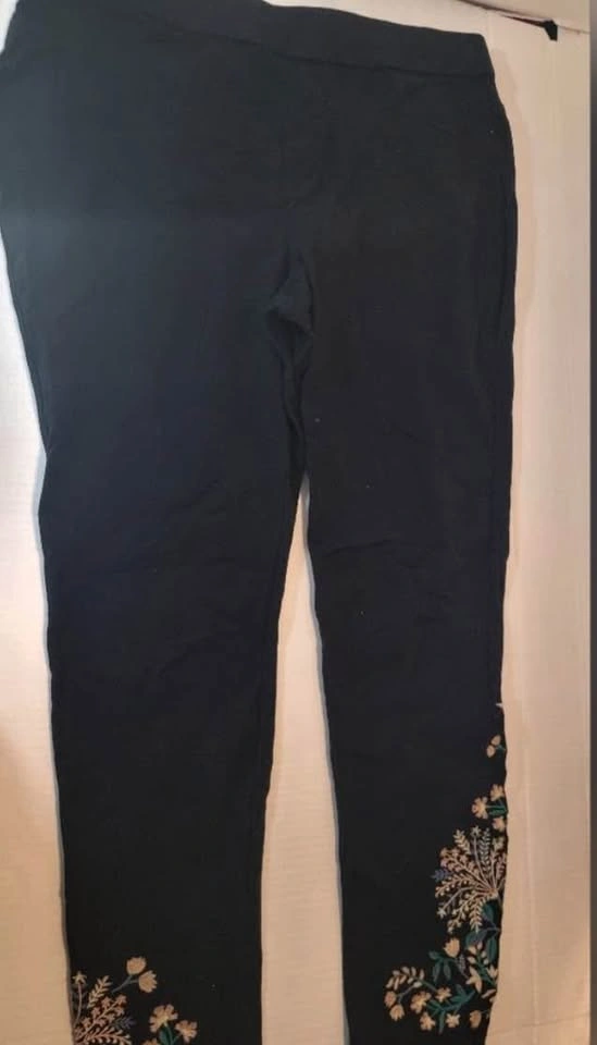 Style &Co Black Leggings with Floral Embroidery Size Large Petite