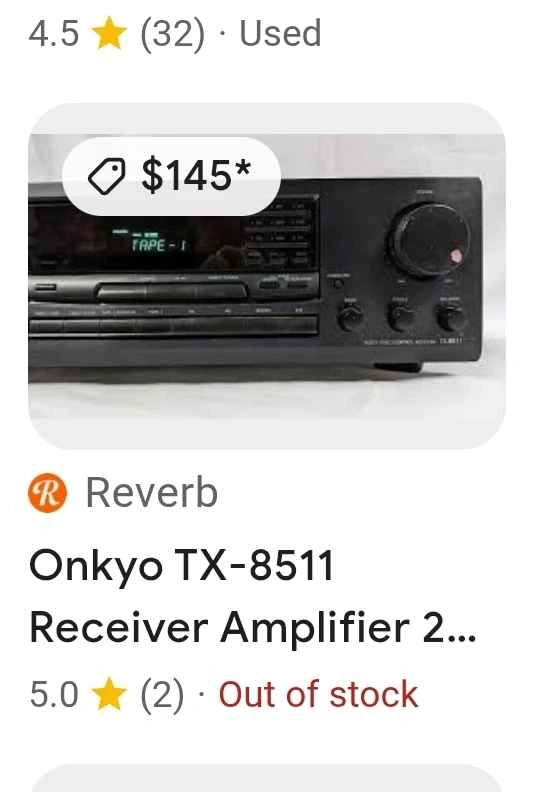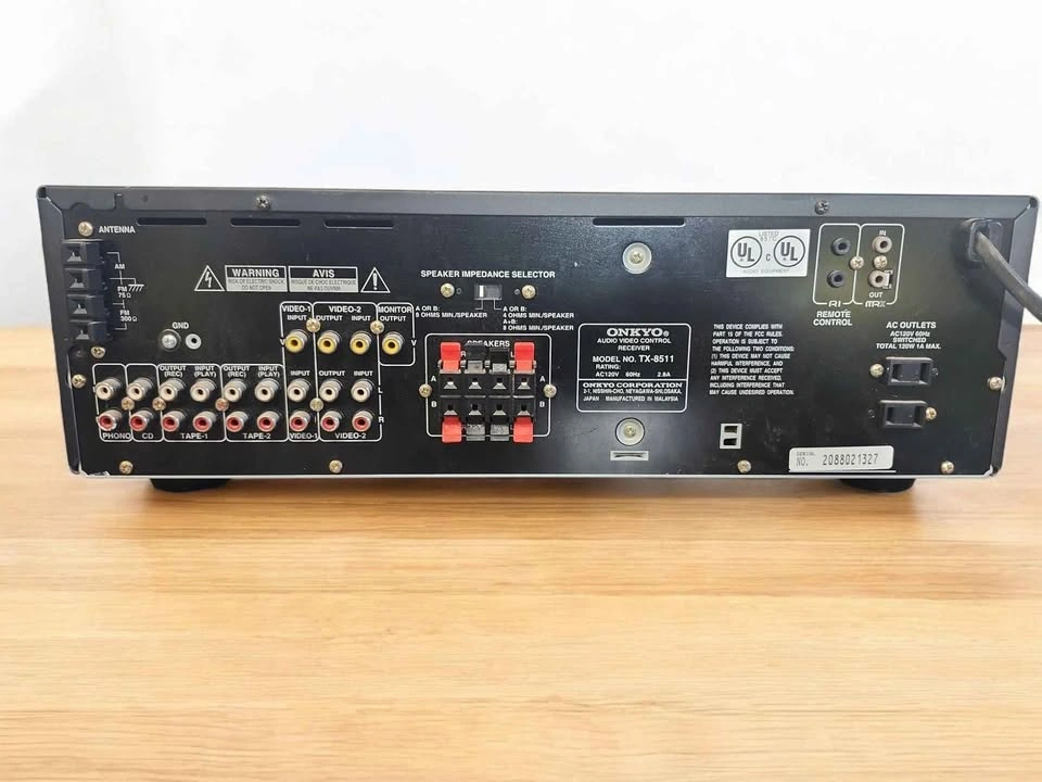 Onkyo TX-8511 includes: Power Output: 100 watts per channel into 8 ohms. Frequency Response: 20Hz to 30kHz. Low-Impedance Amplifier Design: Known for its ability to deliver clean, high-current power. Robust Construction: Features an oversized, shielded transformer, large filter capacitors, and a cast aluminum heat sink for stable and efficient operation. Connectivity: Allows connection of up to 4 audio source components (e.g., CD-R, cassette) and up to 2 A/V components (e.g., VCR, DVD), with video switching capabilities. 30 AM/FM presets, and includes a phono input among its 4 audio inputs.