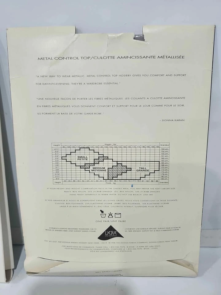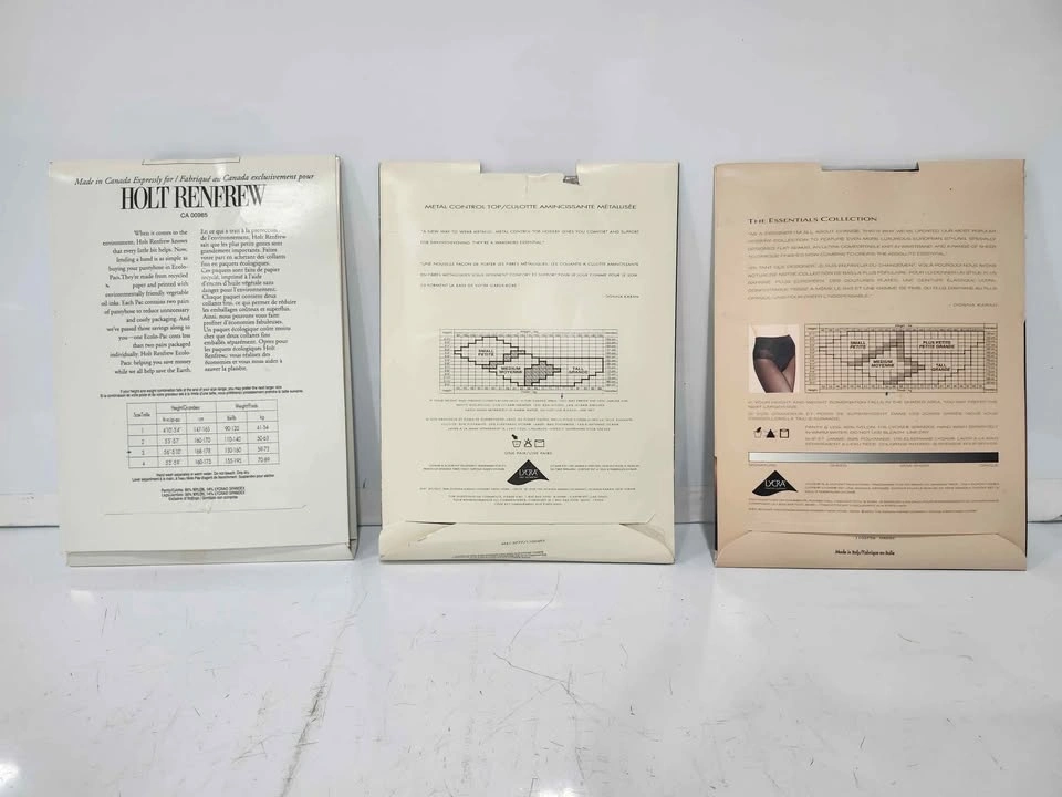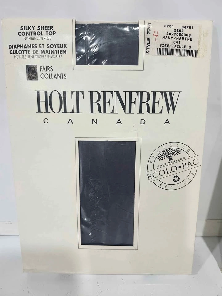- Holt Renfrew Silky Sheer Control Top pantyhose. Product: Silky Sheer Control Top Pantyhose by Holt Renfrew. Features: Invisible Supertoe, control top, silky sheer finish. Color: Navy/Marine. Size: Size 3. - Donna Karan New York's " Style M41 TALL/GRANDE. It's described as Sheer Jersey, with a CONTROL TOP/CULOTTE AMINCISSANTE, and features a SILVER/ARGENT METAL/METALLISÉE finish. - Donna Karan New York's " The Essentials Collection Satin Sheer tights or pantyhose. These hosiery items are known for their satin sheer finish and often feature a control top for shaping and support. Product Details: Brand: Donna Karan New York Collection: The Essentials Collection Style: Satin Sheer (or similar, like Signature Sheer, Matte Sheer, depending on the specific item) Features: includes a control top and sheer toe, with a focus on comfort and a smooth, elegant appearance