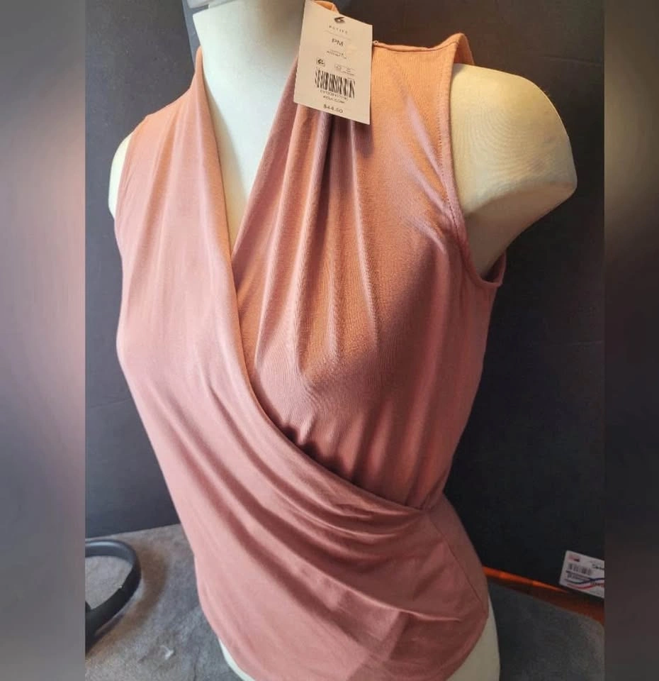 New The Limited Sleeveless Pink Wrap Top Size Petite M Rosehip Tea Color
