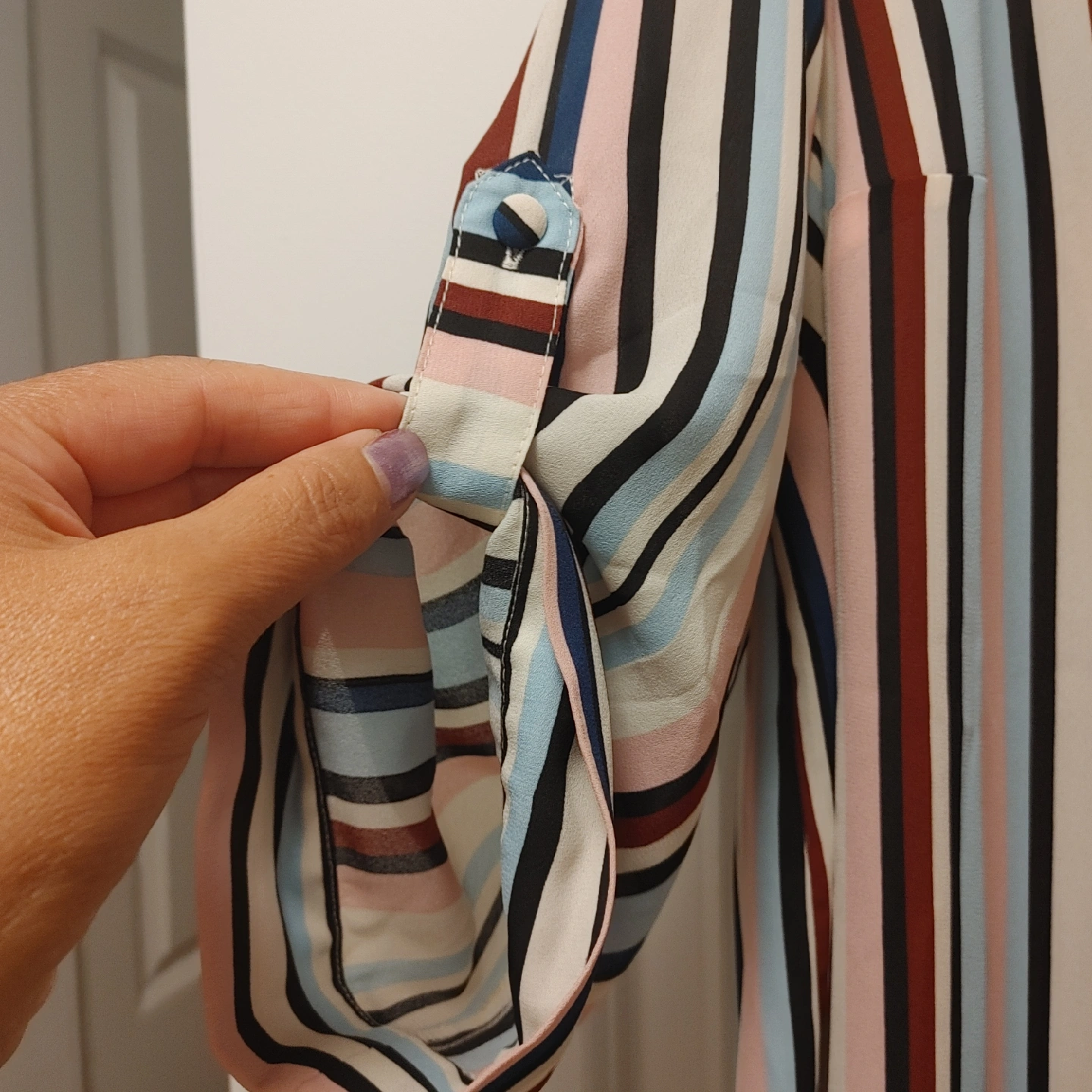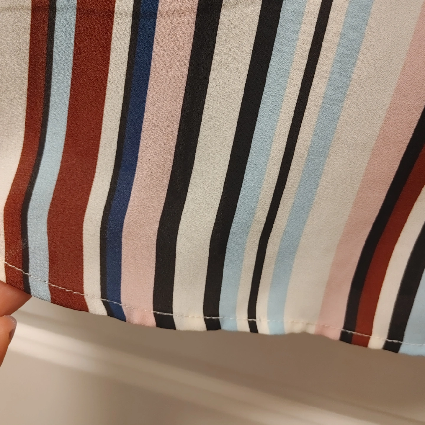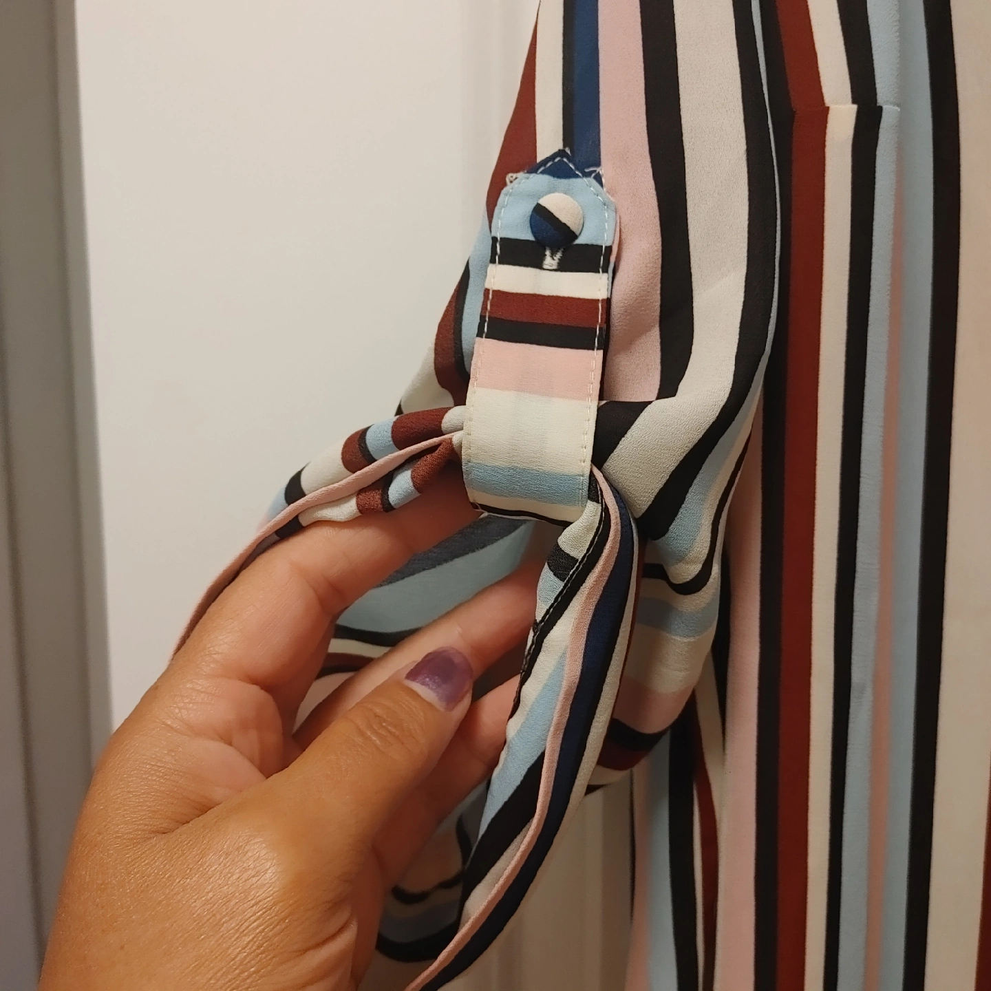Selling a Torrid Harper blouse in size XL It features a colourful striped pattern and roll-tab sleeves. Great for a casual or work outfit!