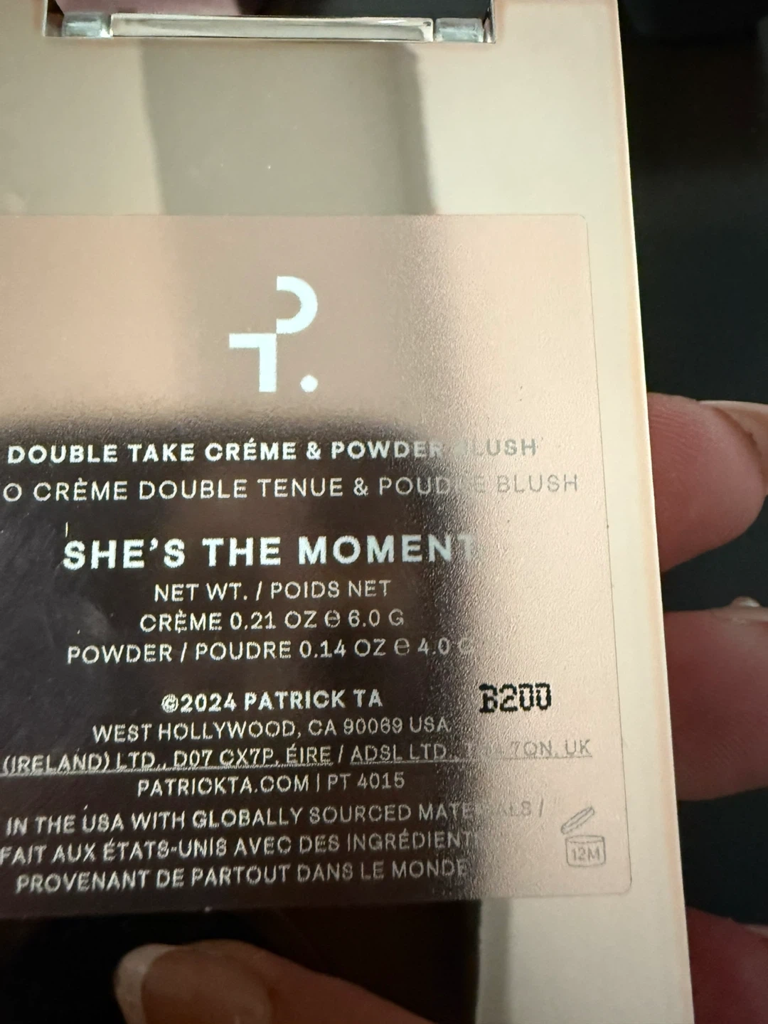 Selling a Patrick TA Double Take Crème & Powder Blush in the 'She's The Moment' shade. This blush duo includes both a crème and powder formula for a customized flush. The crème is 0.21 oz (6.0 g) and the powder is 0.14 oz (4.0 g).brand new