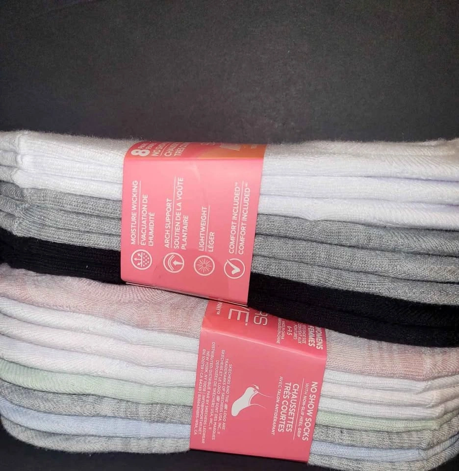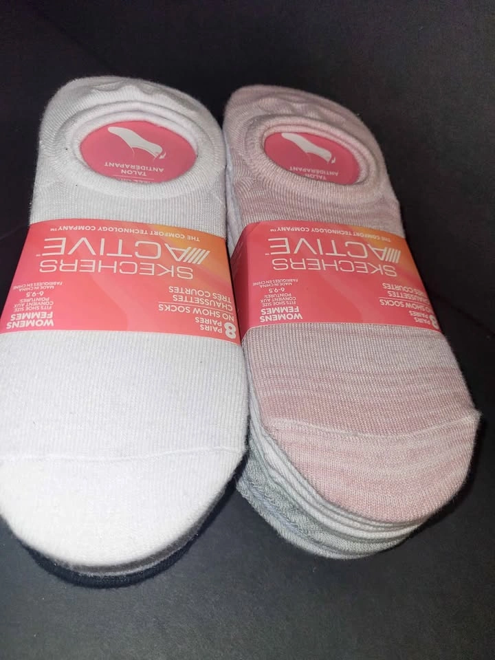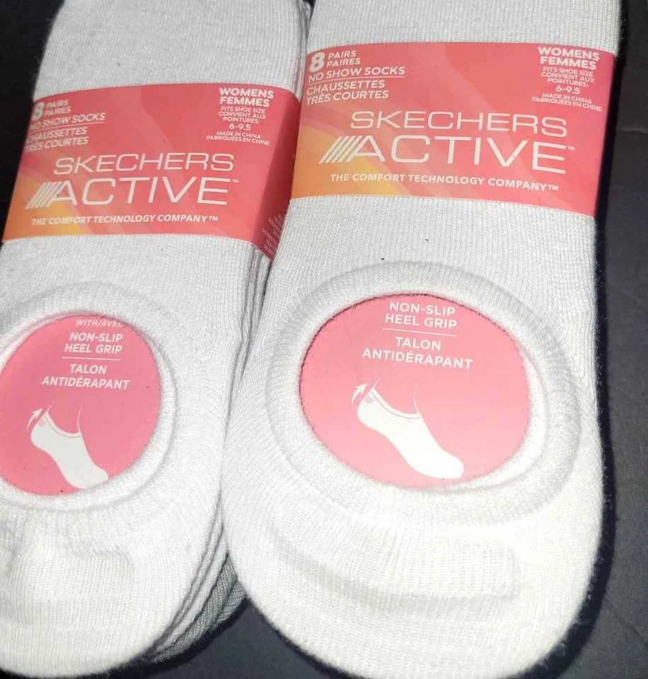 16 Pairs Skechers Active Moisture Wicking Heel Grip No-Show Socks 2×8pairs No show socks Non-slip heel grip Y-heel gore Light weight construction Moisture wicking Fabric Content: 71% polyester, 24% cotton, 3% rubber, 2% spandex Sizing: Shoe size: 6-9.5