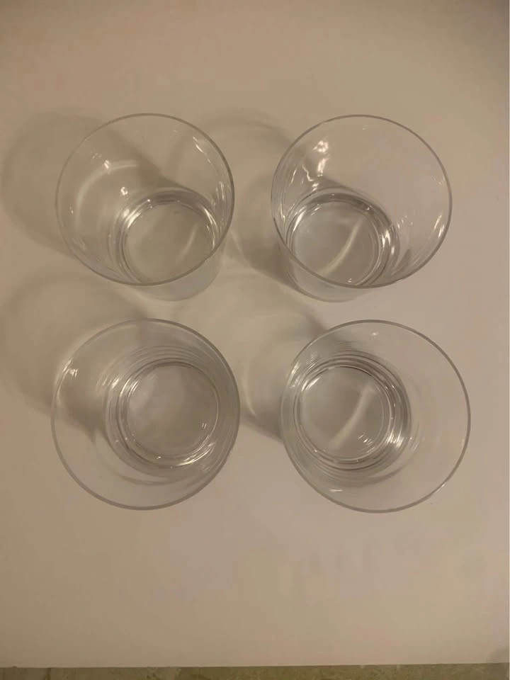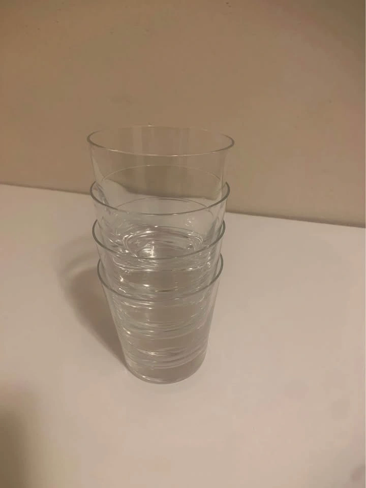 Set of 4 clear glasses. Perfect for everyday use, in great shape and ready for a new home!