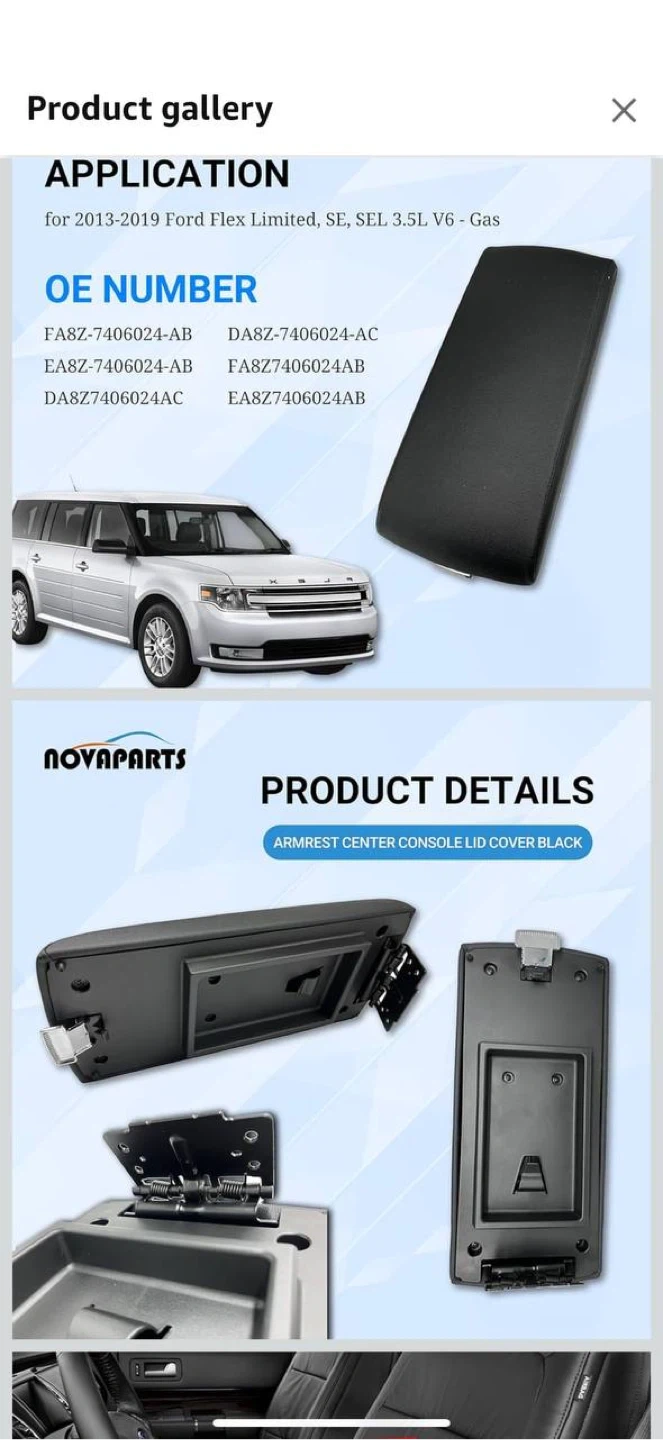 Armrest Lid Cover for Ford Flex 2013โ2019 ๐ฅ Brand new โ $70 ๐ฅ Replacement center console armrest lid cover for Ford Flex 2013โ2019 (3.5L). Made from premium black leather โ durable, stylish, and fits perfectly like OEM. โ Direct replacement, plug & play fit โ Premium leather texture โ Strong hinge and latch โ Compatible with part numbers FA8Z-7406024AB / DA8Z-7406024AC ๐ฆ Condition: Brand new ๐ Pickup in Waterloo ๐ See my other listings for more car parts & accessories