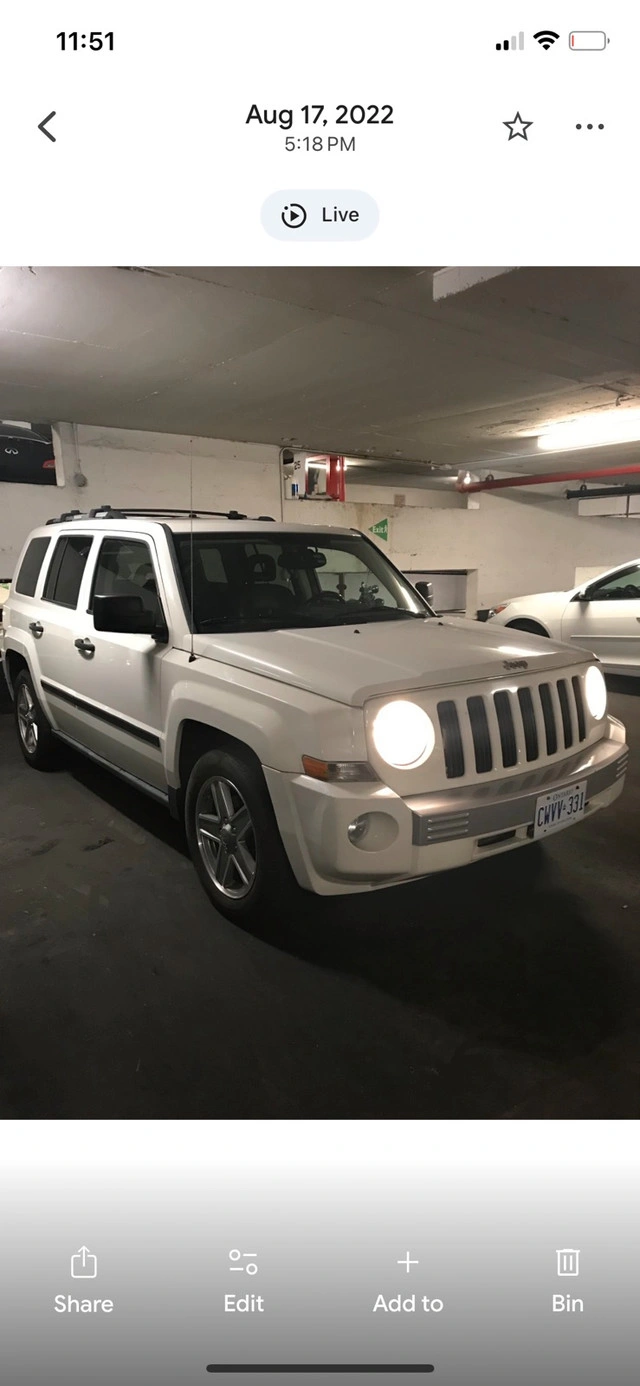 Jeep patriot 167k km 4 cylinder Leather seats Condition: Used Make: Jeep Model: Patriot Year: 2008 Kilometers: 167000 Bluetooth: Yes For Sale By: Owner Cruise control: Yes Sunroof: Yes Air conditioning: Yes Trailer hitch: Yes Alloy wheels: Yes Body Type: SUV, Crossover Navigation system: Yes Push button start: Yes Parking assistant: Yes