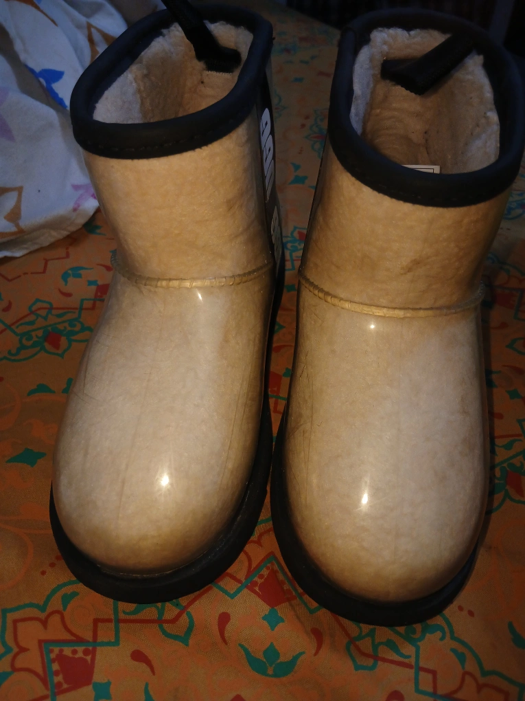 Selling a pair of UGG waterproof clear boots in size 12. These boots are in great condition and ready for a new home! They are perfect for keeping your feet dry and stylish during those rainy days