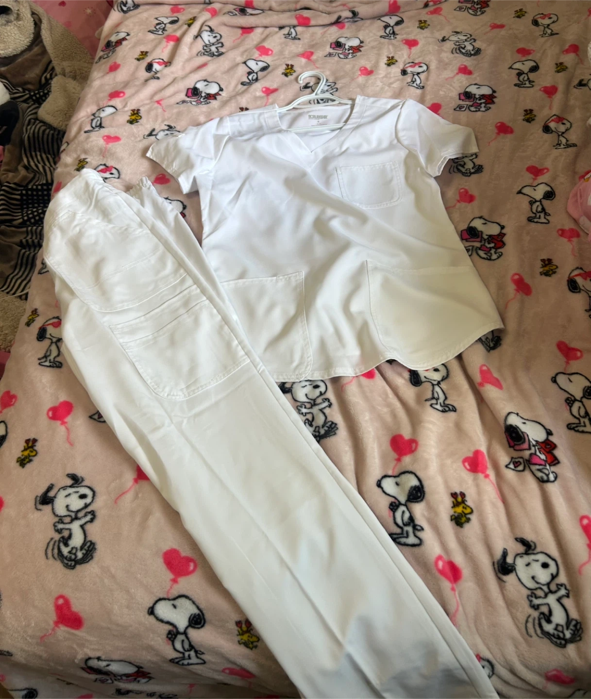 Selling a white Scrubstar scrub set. It's in great condition and perfect for anyone in the medical field or a student needing scrubs for placement