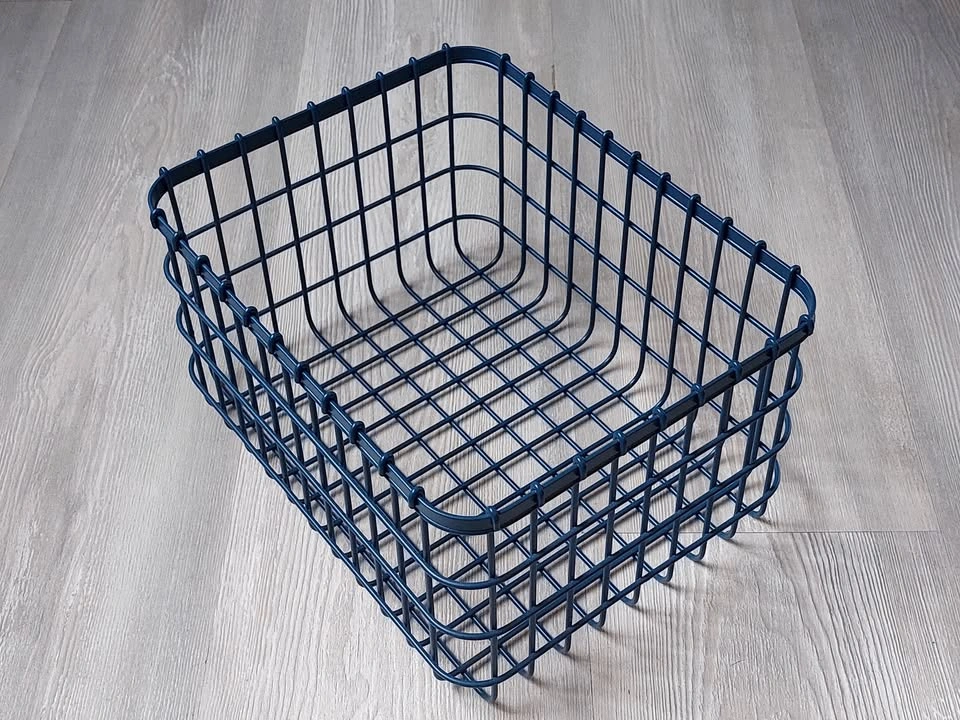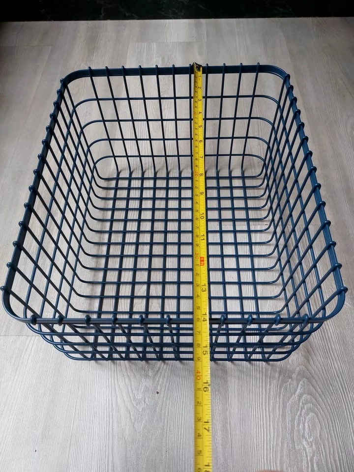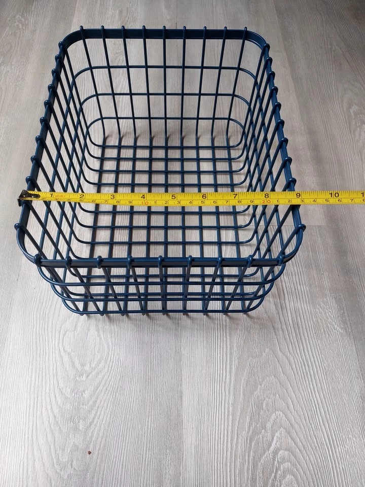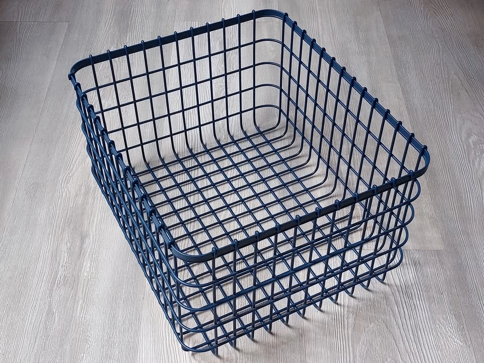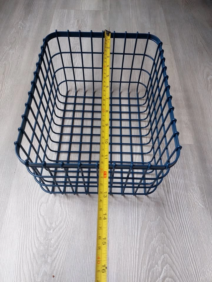 These are two of my favourite storage baskets, made by OUI. They're elegant, yet extremely sturdy. The openings are reinforced, with no sharp edges. They easily carry books and other heavy items. Sold as a set, like new. Dimensions: W12in x L14in x H8in Dimensions: W9in x L11.5in x H6.5in