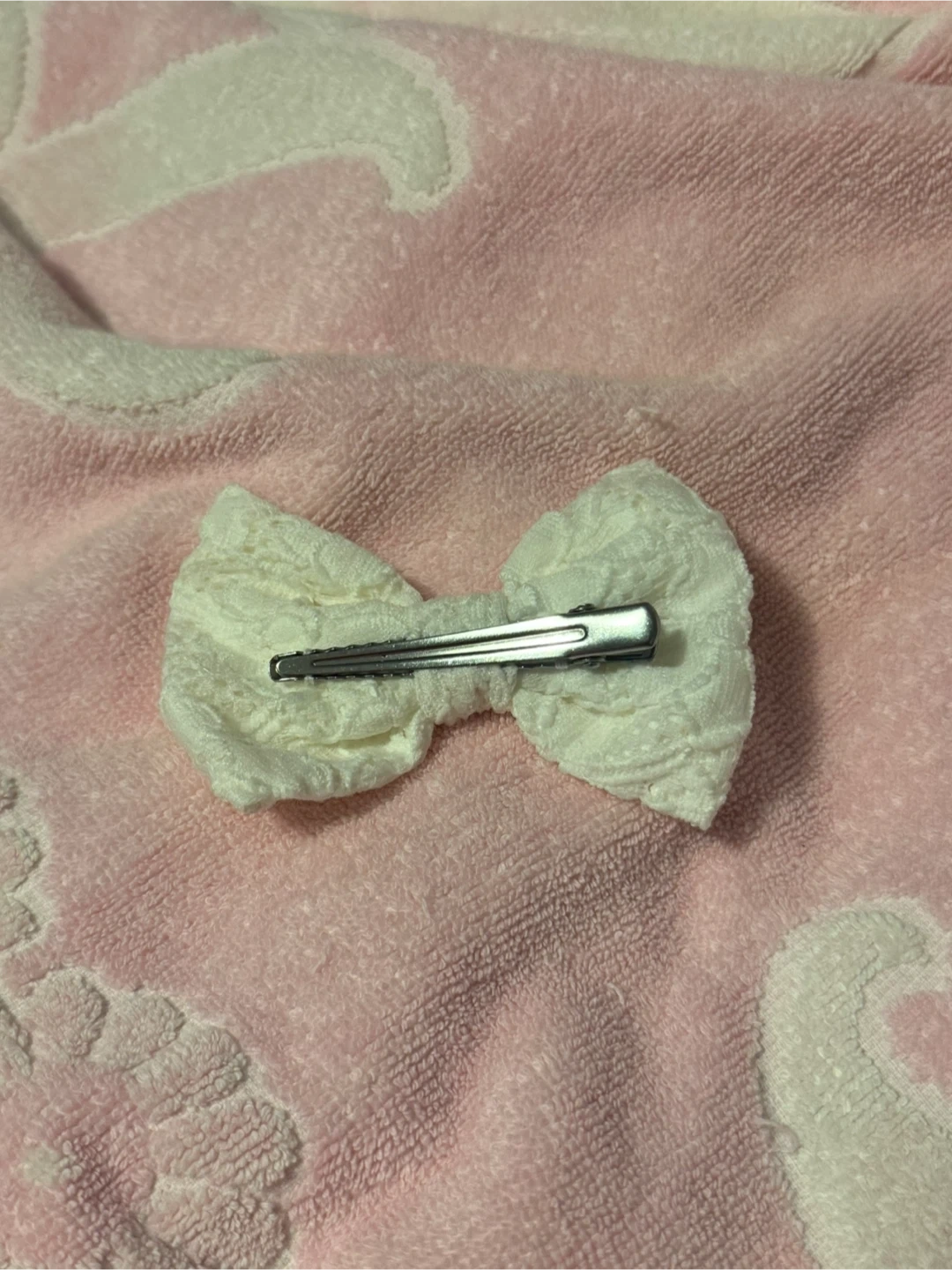 Selling a cute white lace bow hair clip! It's in great condition and would be a lovely addition to any outfit or hairstyle