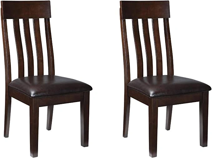 Price is firm, no holds. Pickup only in Lakeview, Mississauga, near Sherway Gardens. If ad is still up, item is still available. Will not respond to generic "Is this still available?" Retails for $400+tax (https://ashleyhomestore.ca/products/haddigan-side-chair) This pair of chairs is classically designed with fresh, cool touches. Dressed in luxurious finishes and feel-good materials, they're sure to be everyone's favorite seat. Made with wood in a dark brown finish. Cushioned seats are wrapped in vinyl faux leather upholstery. The wide-slat, rake-back design with lumbar curve is a striking element that's sure to stand out in an eat-in kitchen, lofty apartment or dining room. Each chair measures 19.75” W x 24.25” D x 40.25” H.