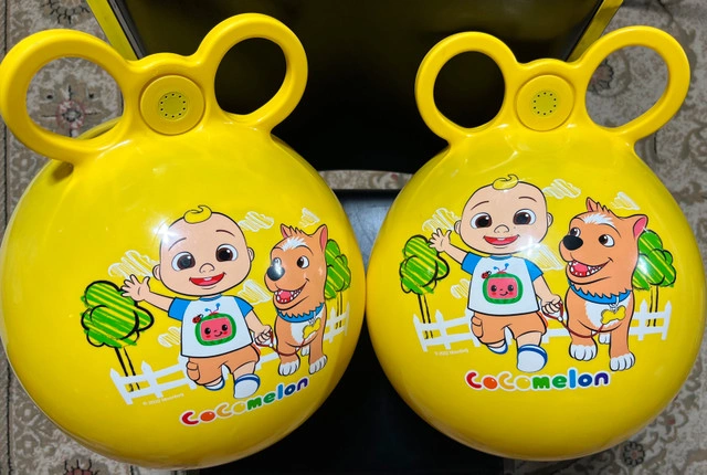 Get ready to bounce with these Cocomelon hopper balls! These gently used, bright yellow hopper balls feature fun Cocomelon graphics, perfect for toddlers learning to balance and hop. Each ball has easy-grip handles and is made from durable material for safe play. Additional features include: * Durable PVC material * Easy-grip handles * Bright Cocomelon design * Suitable for indoor and outdoor use These hopper balls are in great shape, ready for hours of bouncing fun! If the ad is up, they are available.