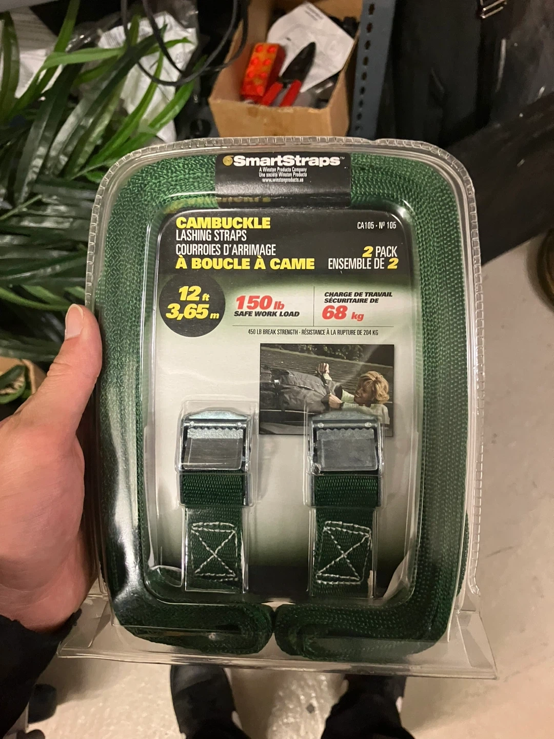 Selling a 2-pack of SmartStraps cambuckle lashing straps. These straps are perfect for securing items with a safe work load of 150 lbs (68 kg). Each strap is 12 ft (3.65 m) long. They're brand new and ready to use!