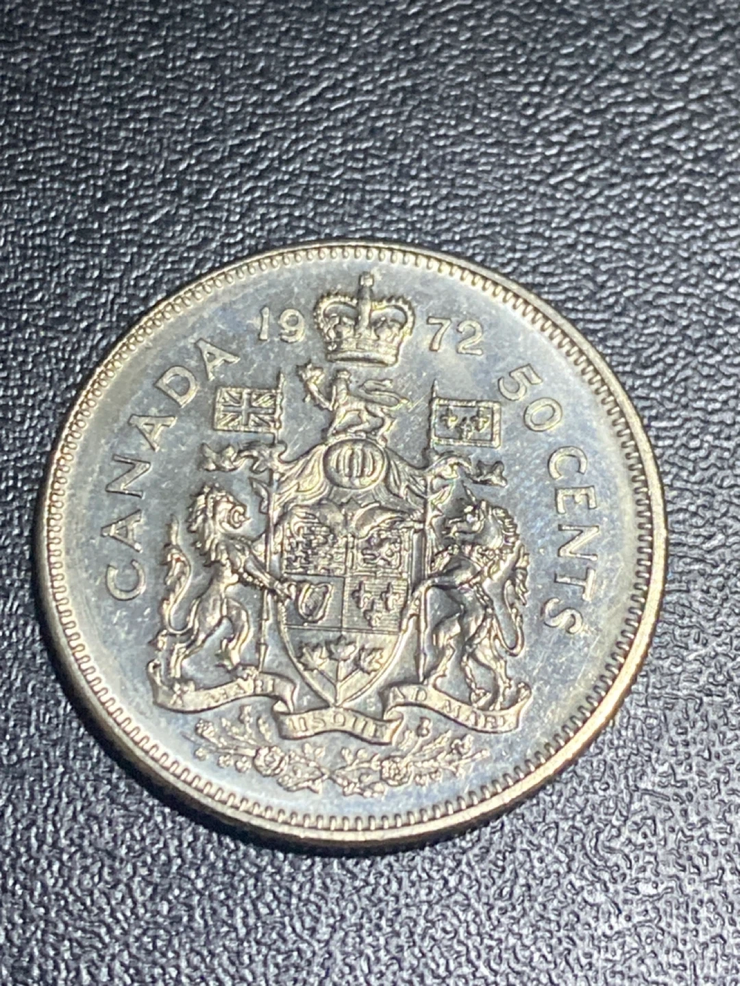 Selling a 1972 Canadian 50 cent coin. It's in good condition for its age!