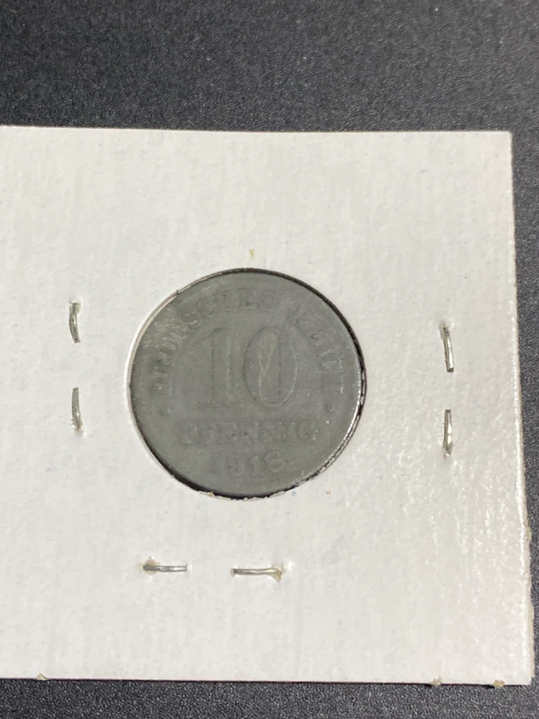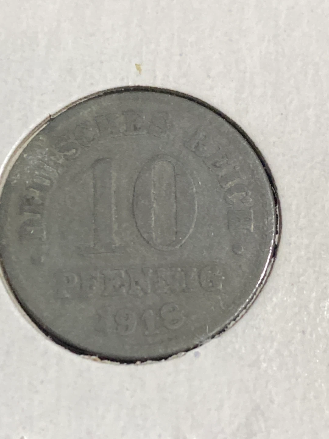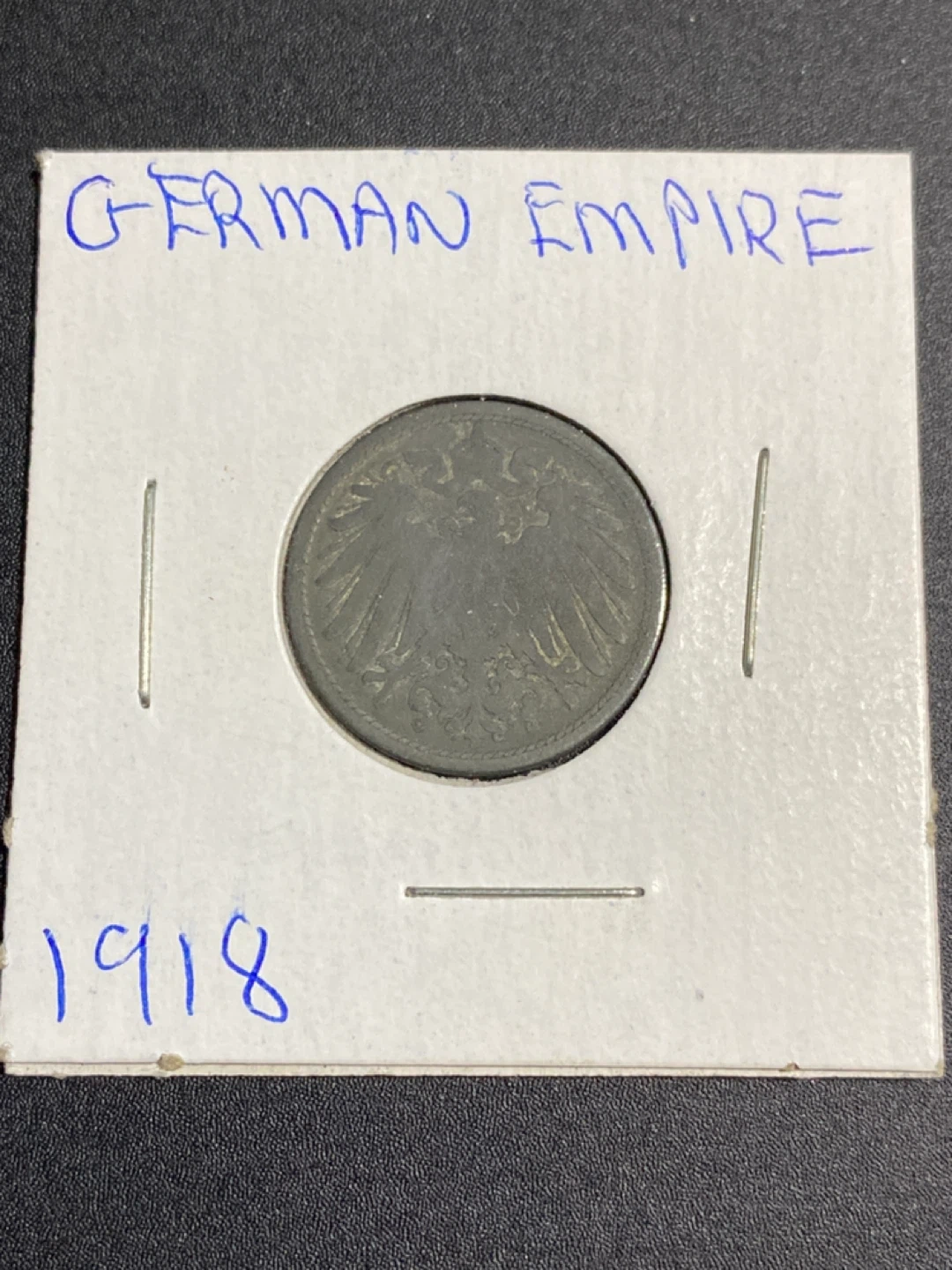 Selling a German Empire 1918 10 Pfennig coin. It's in good condition for its age, with some visible wear. A great piece for any coin collector!