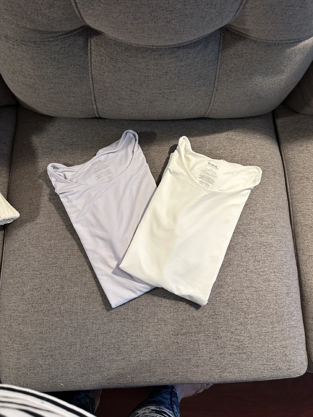 Two Frank And Oak t-shirts for sale! One is white, and the other is a light lilac colour. Both are in great condition and ready for a new home
