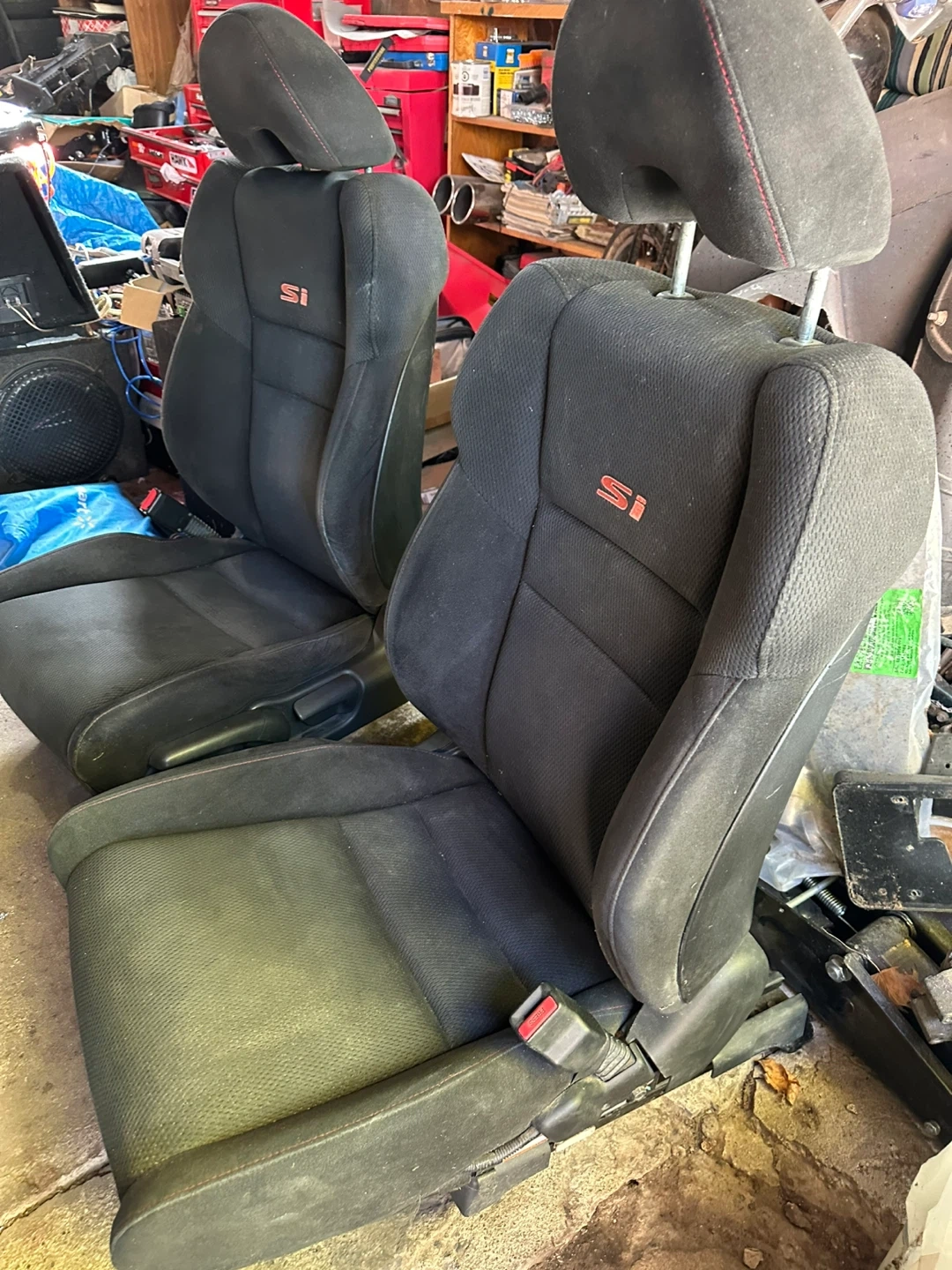 Selling a pair of seats from a Honda Civic SI. Great condition, no rips, comes with wiring harness, sliders and safety belt buckle. Price is firm $250/pair