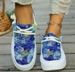 These shoes feature a unique Starry Night design! They are a US size 7.5. Lightweight and comfy, perfect for everyday wear! Unworn and getting rid of stuff I don't use. Best offer takes it. Please check out my other listings I have a lot and am open to trades.