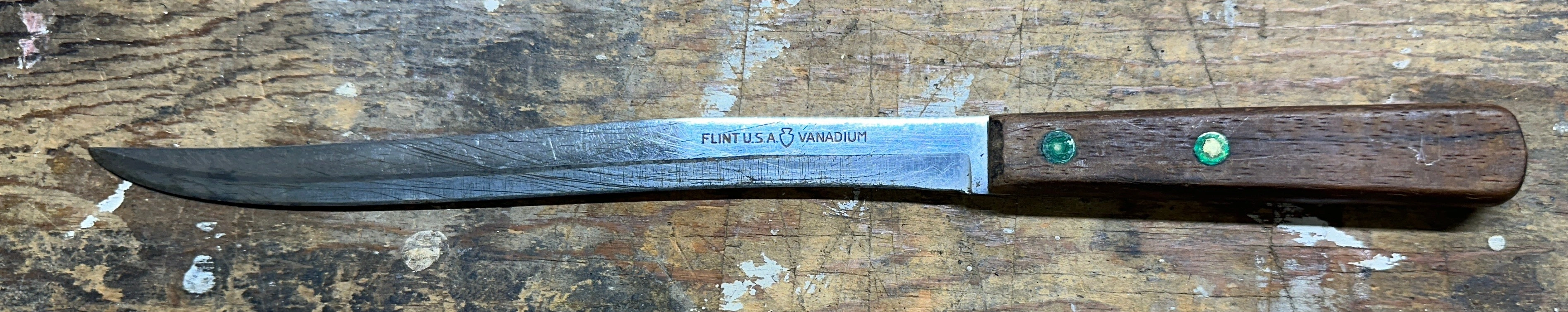 This has some slight surface rust and some scratches which could be polished out. The actual blade is 8", wood handle in good condition.