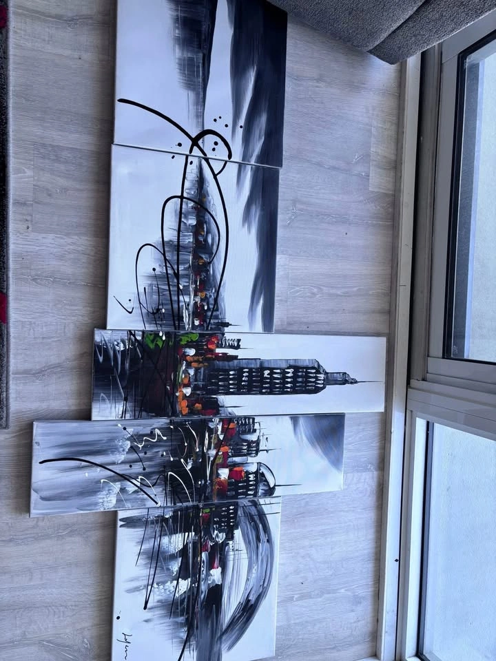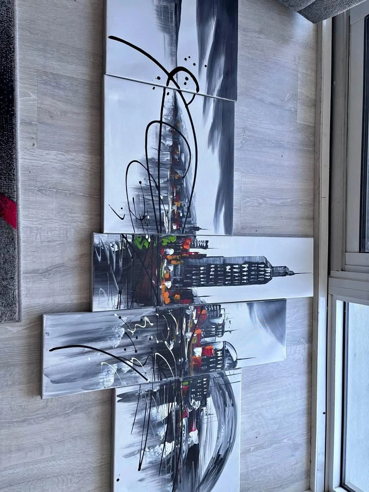 Nice painting. 165 cm W and 90 cm H (from longest pieces). A lovely addition to your place.