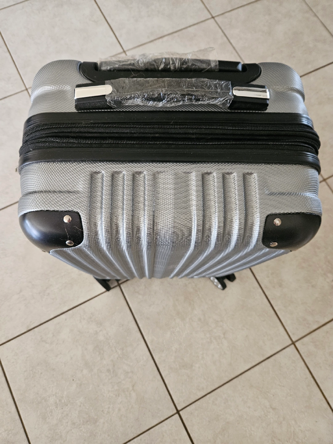 Selling a silver rolling suitcase. It's in great shape and ready for your next trip! The suitcase features a textured exterior and black accents. Perfect for carry-on or checked baggage. price is firm!