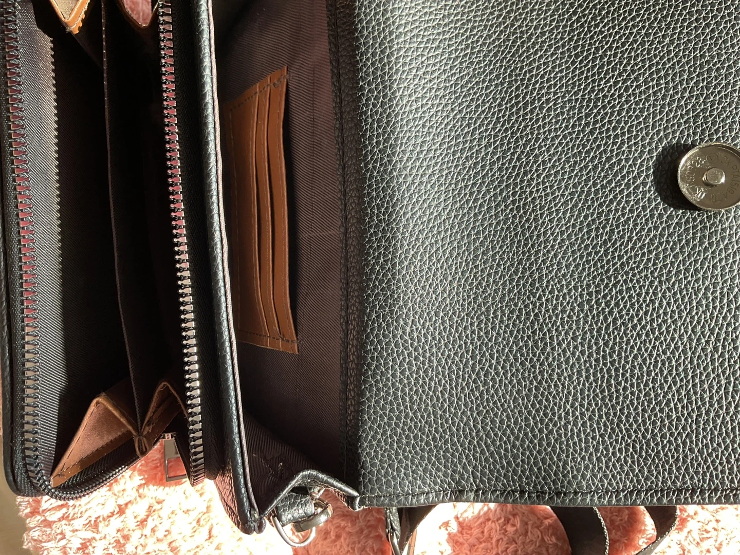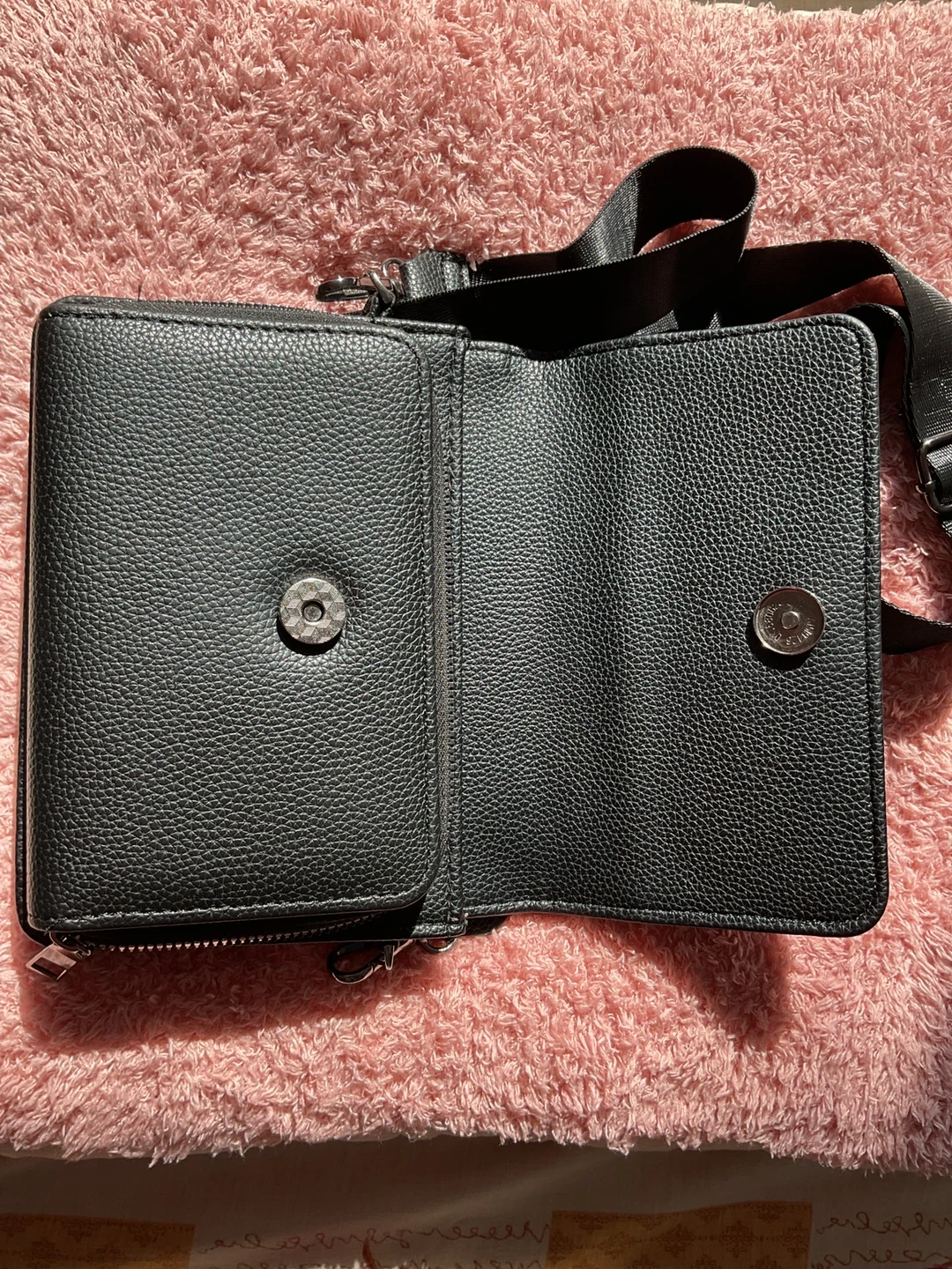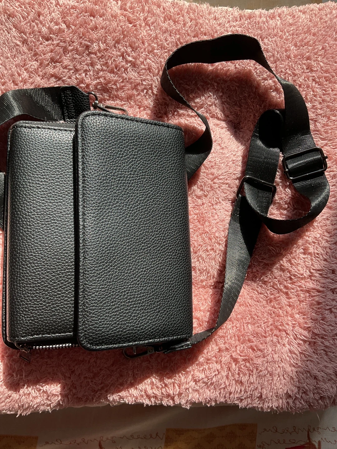 Check out this stylish black crossbody bag! It features an adjustable strap for comfortable wear and a convenient zipper closure. Perfect for keeping your essentials organized on the go!