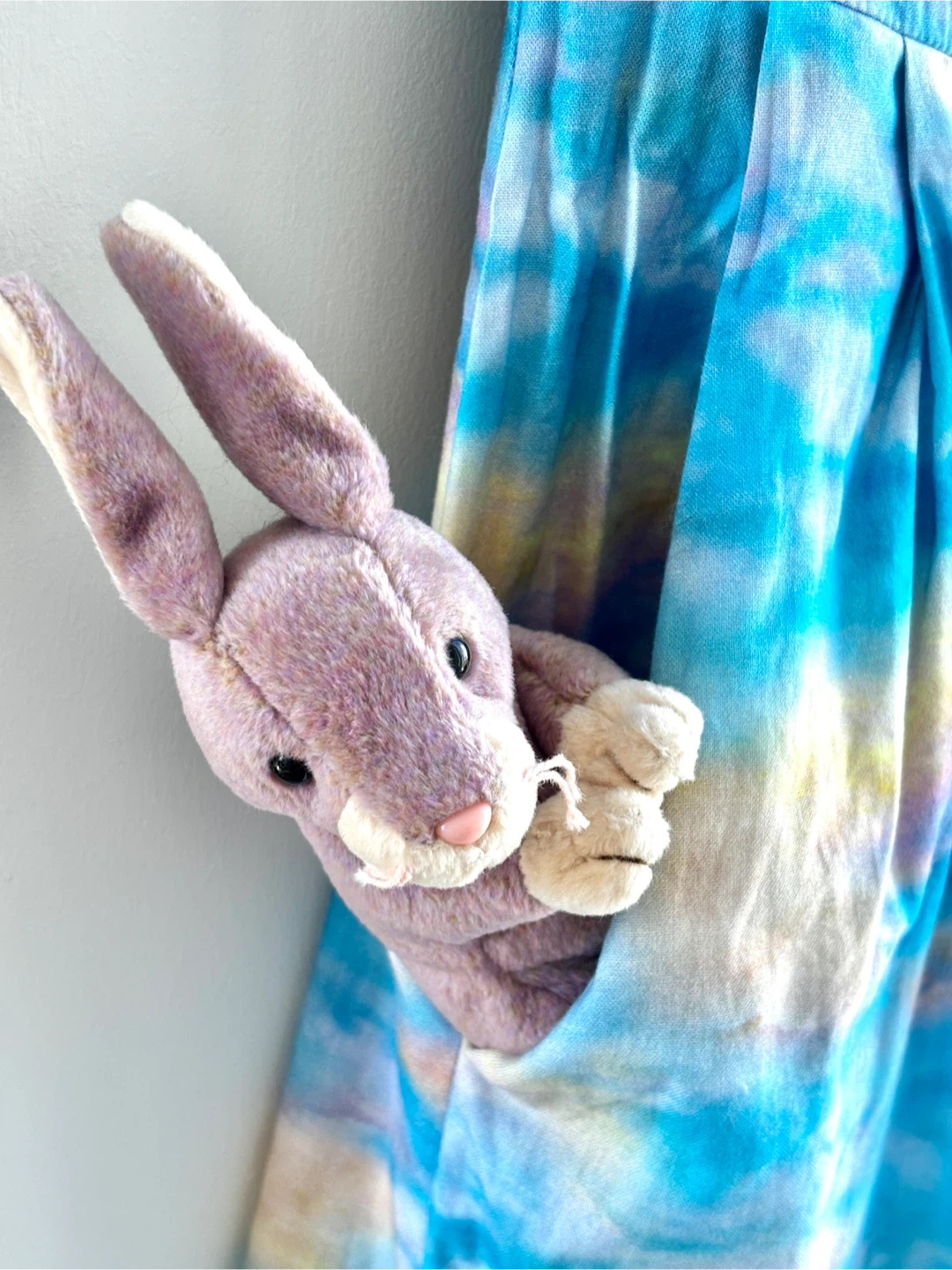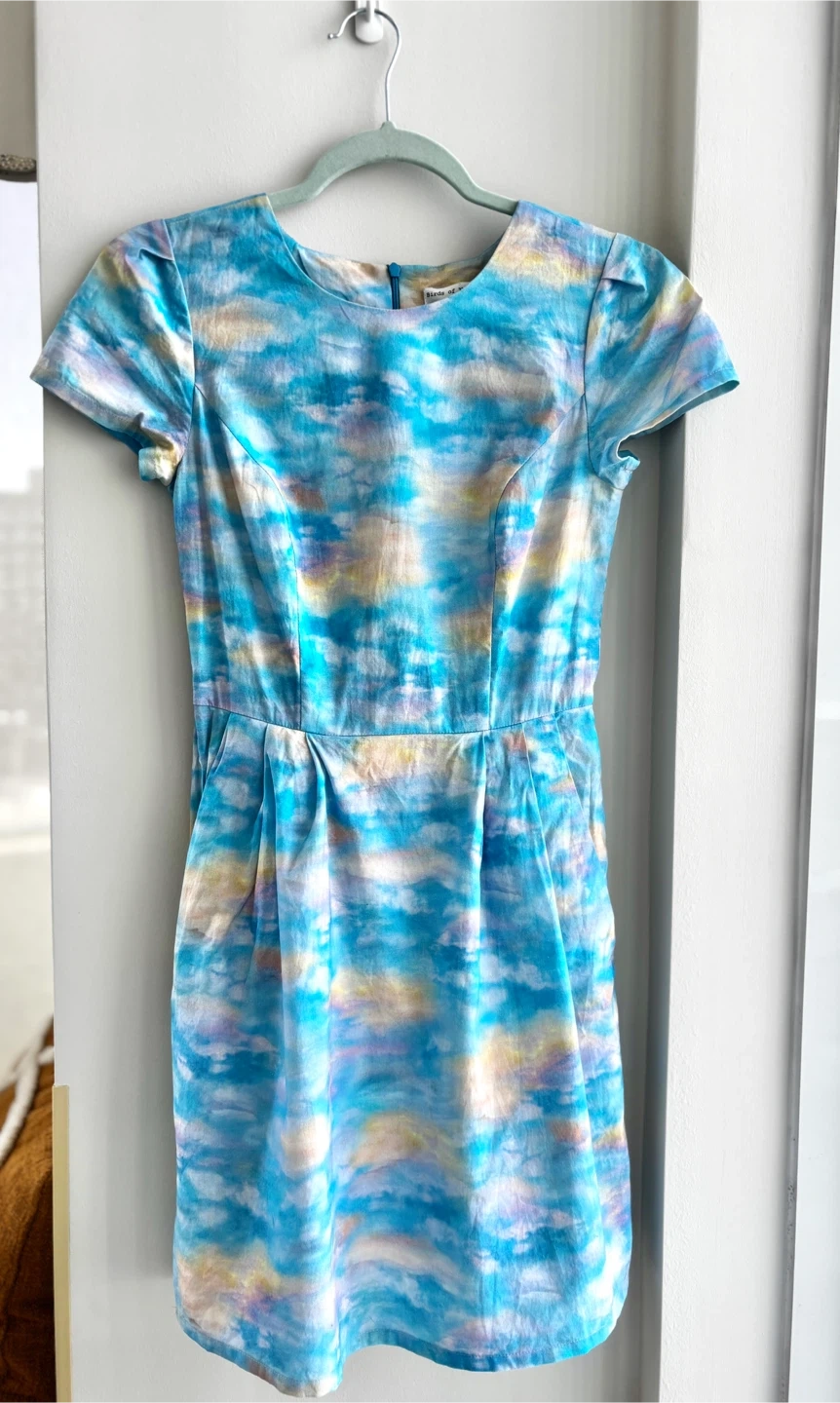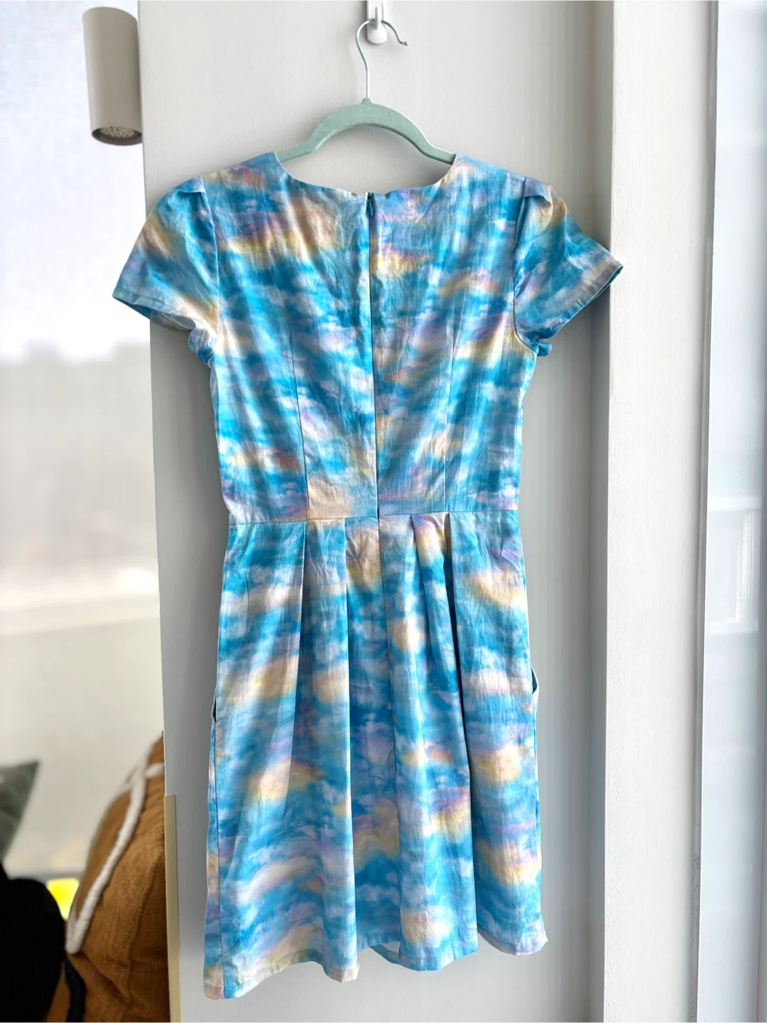 Pick up at Dundas and River. Cash only. This is a beautiful Kittiwake dress in the cumulus cloud print by Canadian designer, Birds of North America. Perfect for a vacation or every day outing, or a part of a Halloween costume! The skirt is fully lined and it has two pockets! (Bunny is for demo purpose, not included ☺️) Invisible zipper on the back. Sizing: Bust: 32-34” Waist: 27” Originally $240.