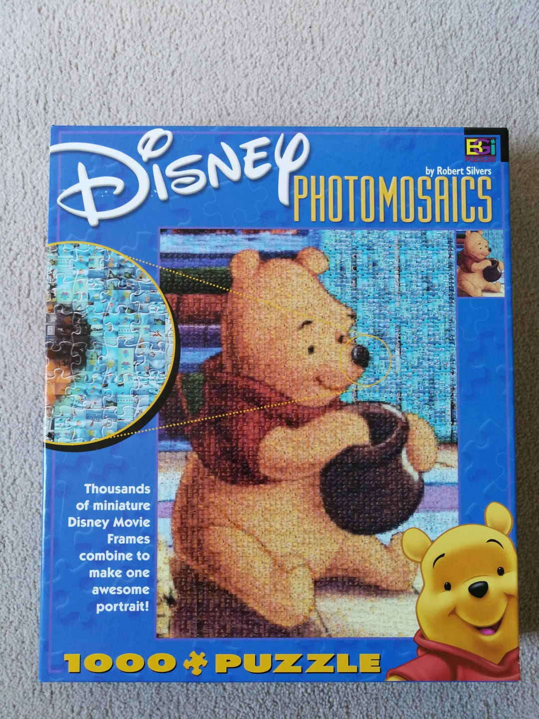Located in OSHAWA ... Ritson Road North and Taunton Road area MINT FRAMED Disney Photomosaic Winnie The Pooh Jigsaw Puzzle Puzzle Size: 27" (H) x 20" (W) Frame Size: 32" (H) x 24" (W) Number of Pieces: 1026 #1 - Puzzle completed as pictured. #2 - Already glued and mounted on cardboard backing. #3 - It's been well protected for over 20 years ... never exposed to sunlight.