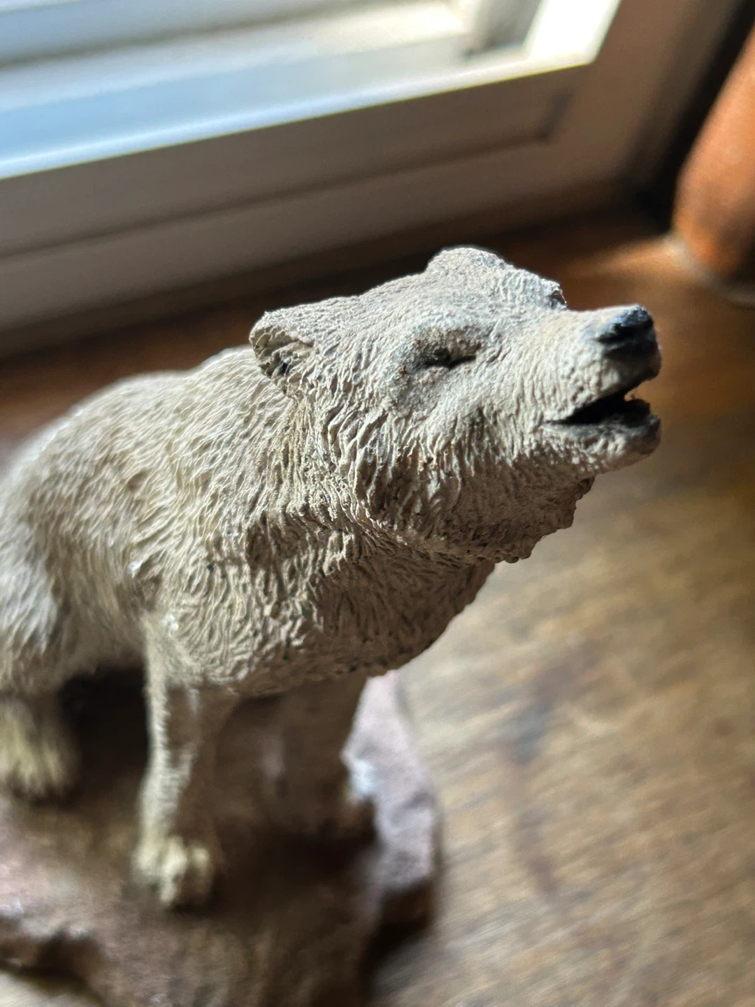 Art statue Living Stone Wolf Figurine - Leader of the pack vintage Donlands O'Connor Wonderfully modelled and realistic Wolf statue art figurine Living Stone © 1992 - Wolf Figurine - Leader Of The Pack Vintage, VGC No Chips.. Condition is Used with couple of light scratches to paint 5 inches tall 4 inches at the base 6.00 Flexible re pickup Elmsdale Road M4J 3M3 Donlands O'Connor East York Don Mills south exit off DVP