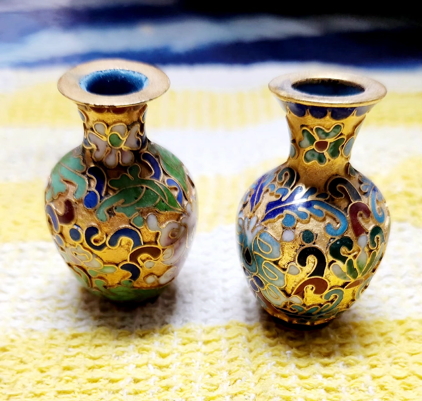 Selling a pair of miniature cloisonné vases! brand new and feature intricate floral designs in vibrant colours hand painted. Perfect for adding a touch of elegance to any space