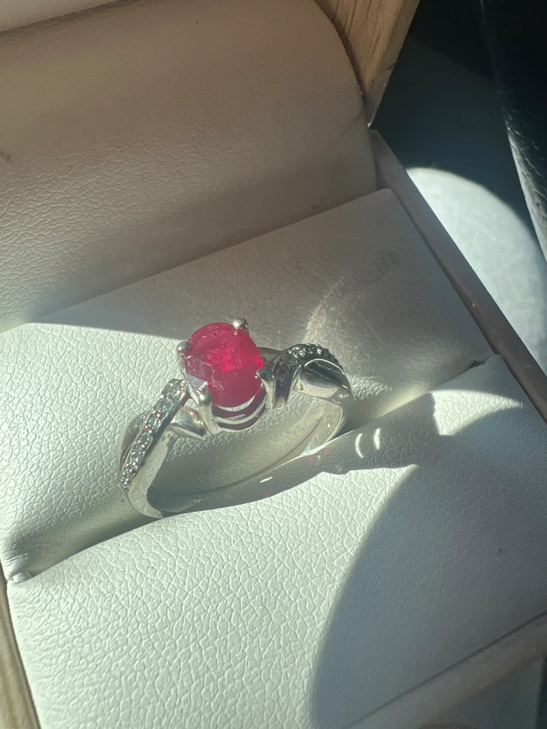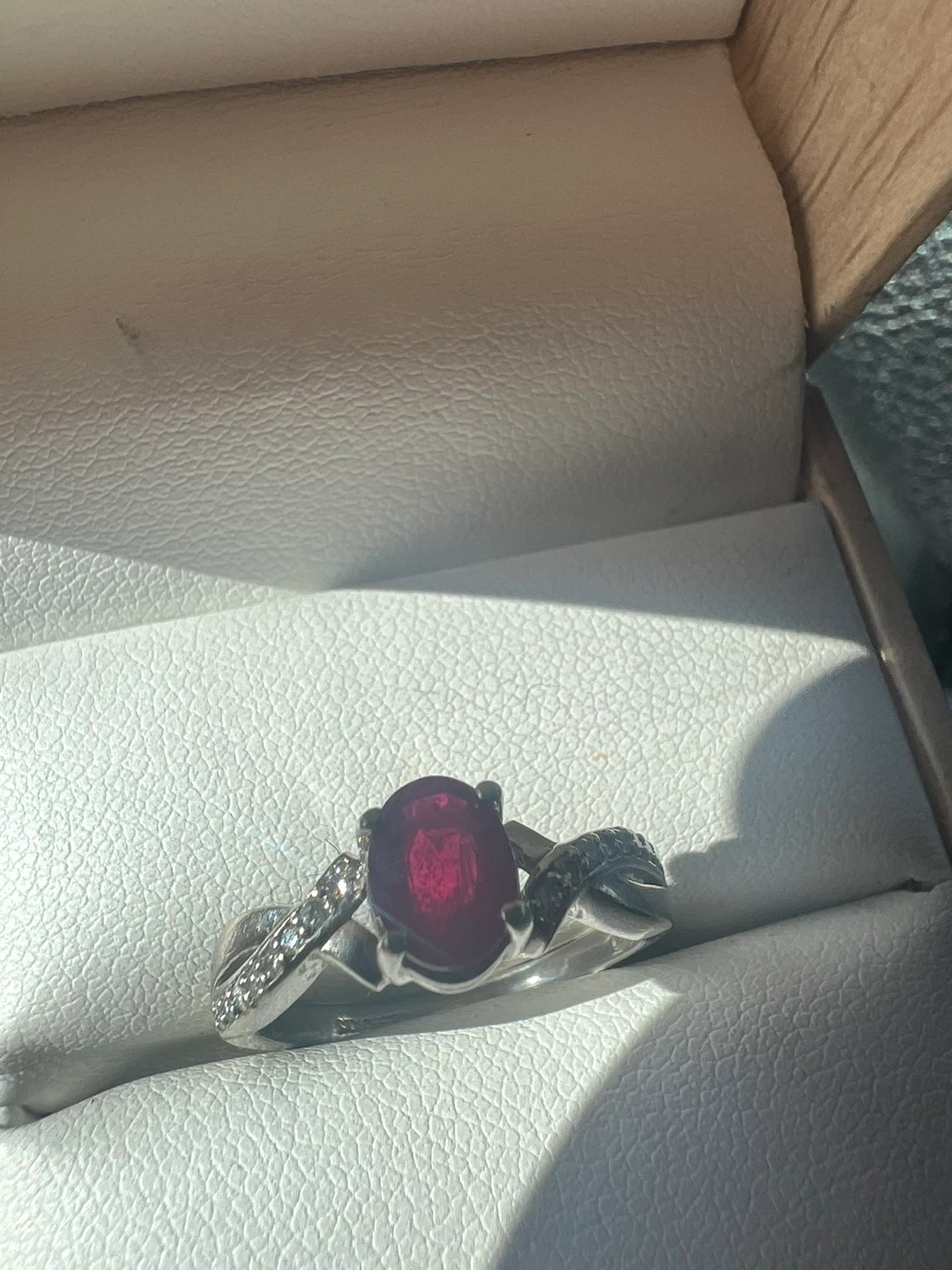 Selling a beautiful ruby ring set in 10K gold. It's in great condition and comes in a box. Perfect as a gift! Size 6-6.5