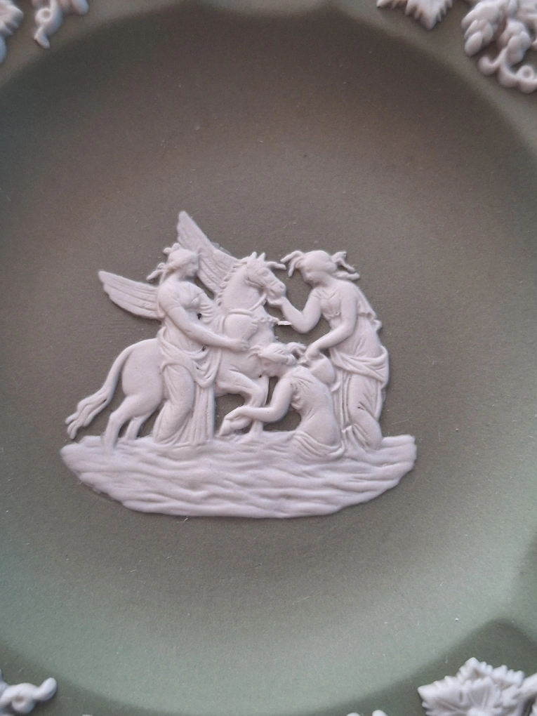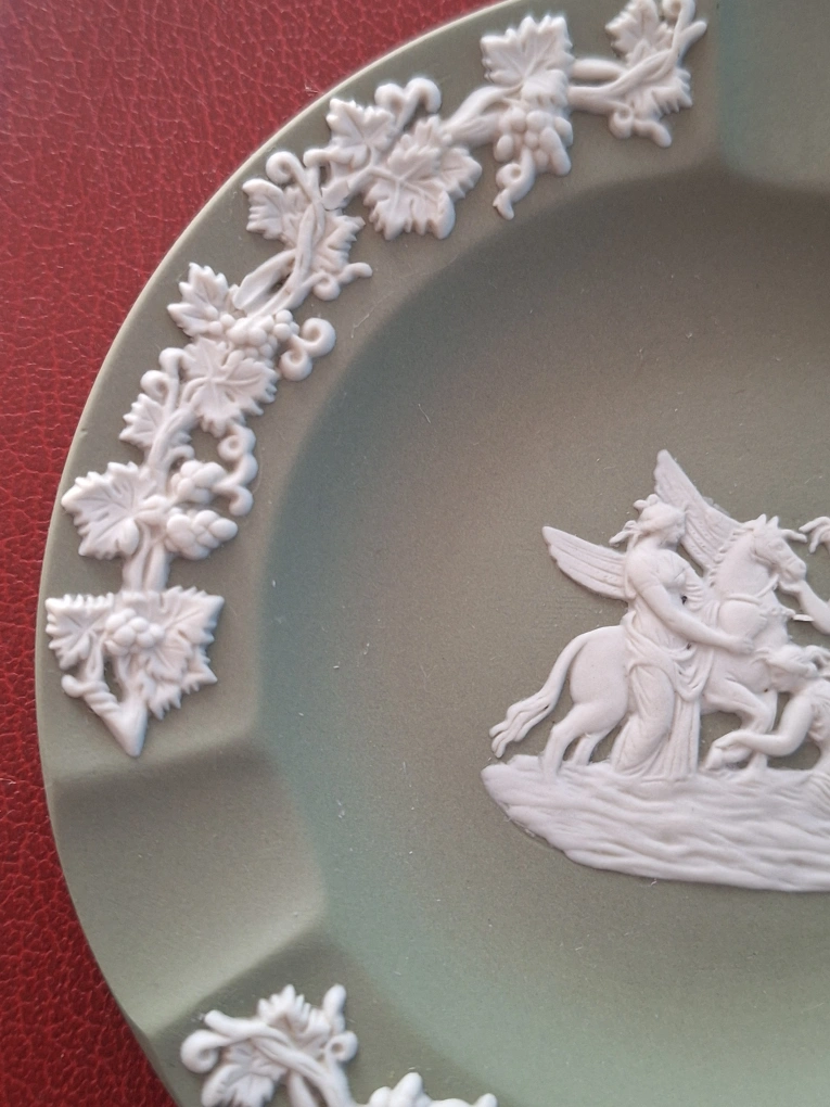Bintage Wedgwood England ashtray. It's in great shape like new and features a classic design with grape vines and a central scene with angels.
