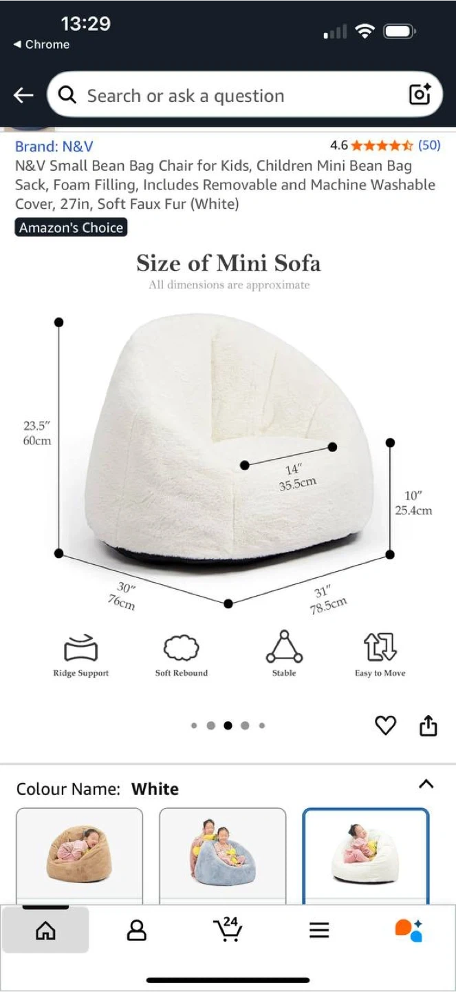 π N&V Small Bean Bag Chair for Kids β Pink (Mini Sofa) π π§Έ Absolutely NEW, still vacuum-sealed! π Soft faux fur cover in beautiful pink colour β perfect for childrenβs room or play area. πͺΆ Foam filling provides excellent comfort and support. π§Ό Removable & machine-washable cover for easy cleaning. π Size: 31β x 30β x 23.5β (78.5 Γ 76 Γ 60 cm). β Lightweight and easy to move. β¨ Ideal for reading, watching TV, or relaxing. π° Price: $65 π Pickup in Waterloo π See my other listings for more great deals!