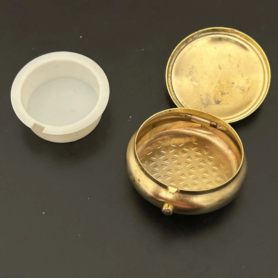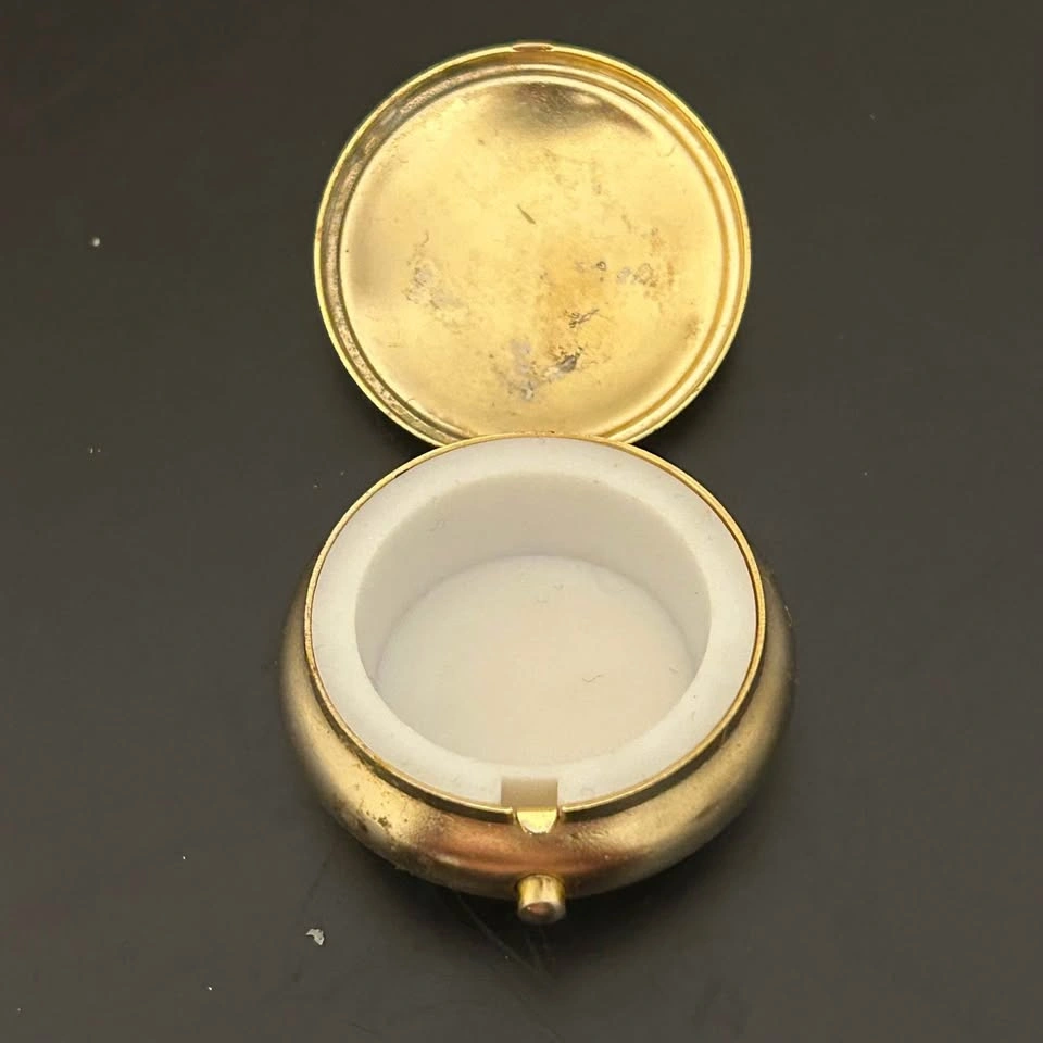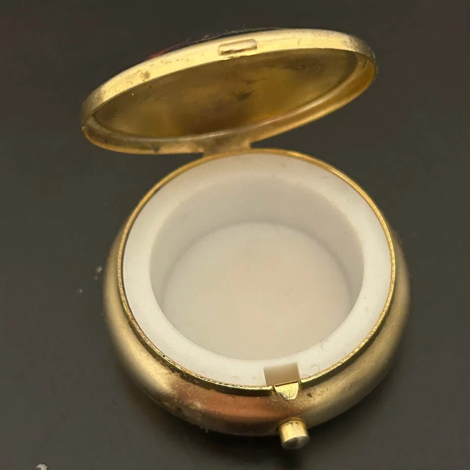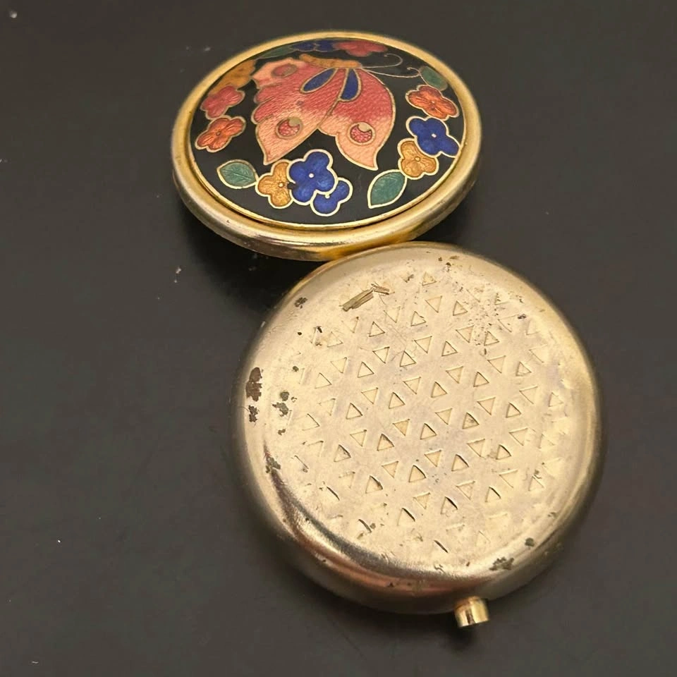 Charming vintage cloisonné enamel pill box featuring a pink butterfly surrounded by colorful flowers on a black background. Made of brass with fine hand-enameled detailing and an inner plastic liner. Compact and decorative — ideal for storing small jewelry, pills, or as a collectible display piece. Diameter about 1.5 inches. Good vintage condition with light patina and minor age wear. Pick up in the Seton area, Calgary. See also my other lots. Open to your questions and suggestions. If necessary, I provide additional photos. These are not new things, so please look carefully at the photos and videos. Sizes are submitted on request and also using a tape measure in the photo.