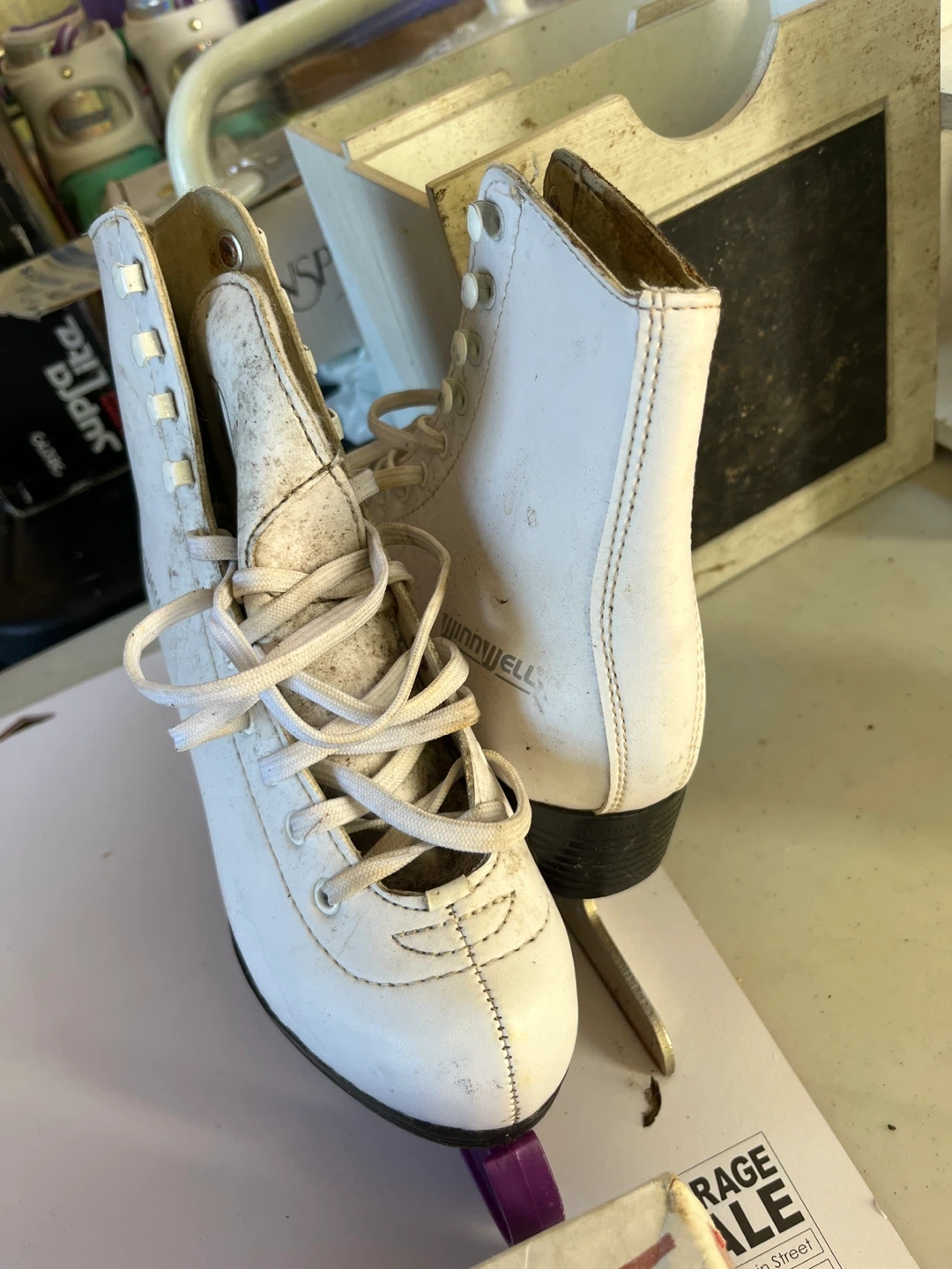 Selling a pair of Windwell ice skates. They're white and show some signs of wear, but still have lots of life left in them. Size 4!!