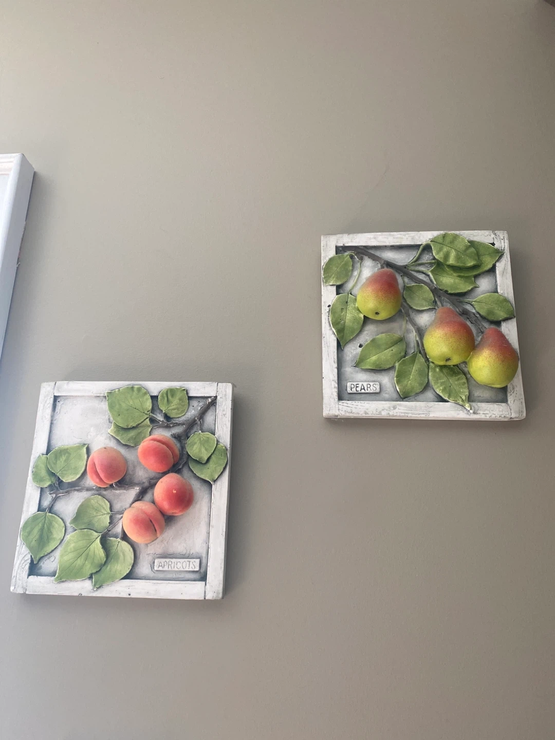 Selling two lovely pieces of wall art! One features apricots and the other features pears. They're perfect for adding a touch of charm to any room. For 2
