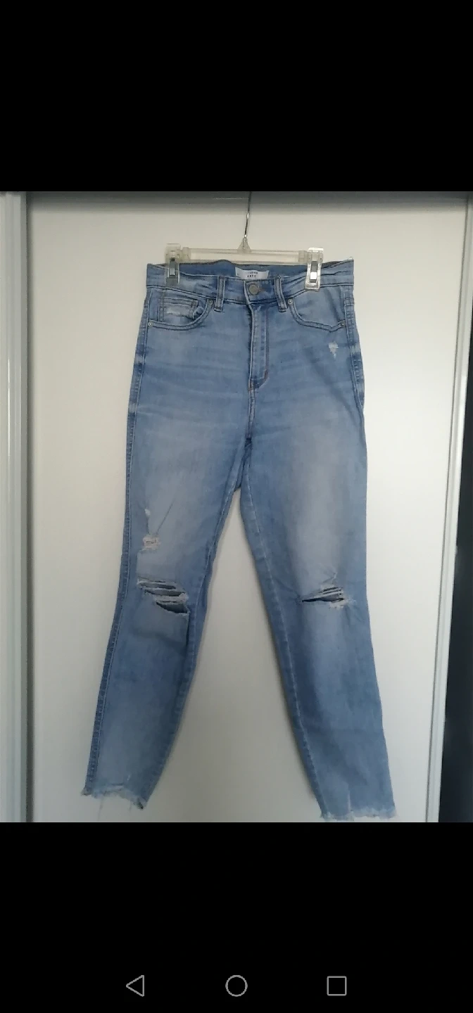 Selling a pair of jeans in size 27. They're in great condition and ready for a new home! They are light blue denim with distressed details.