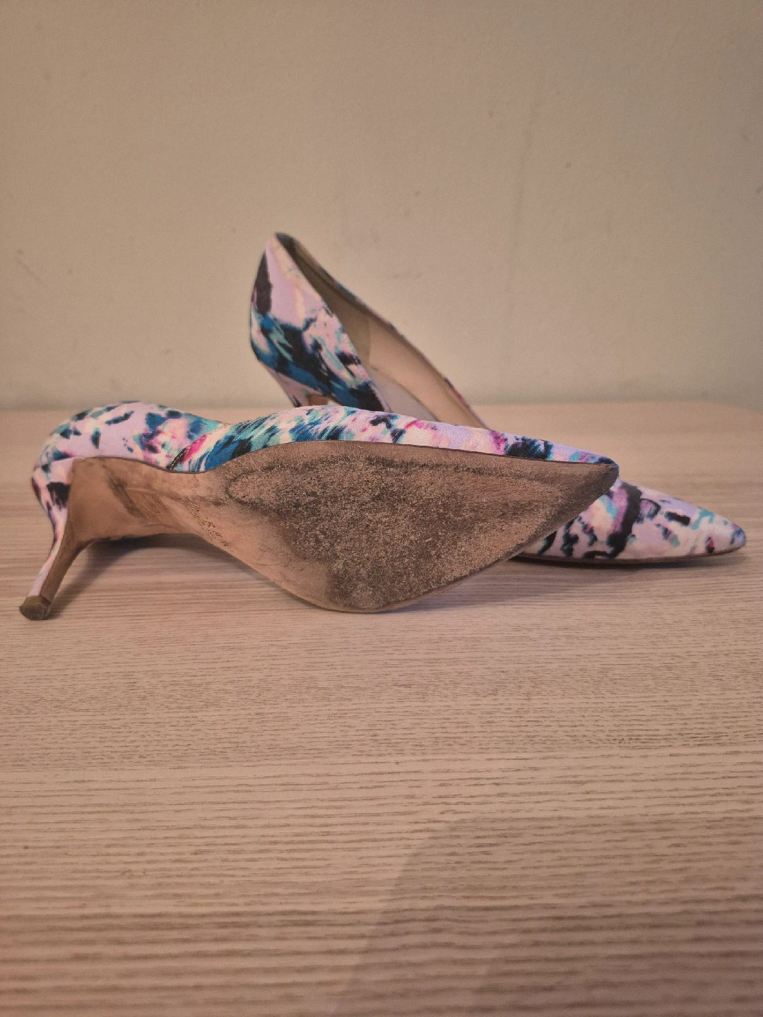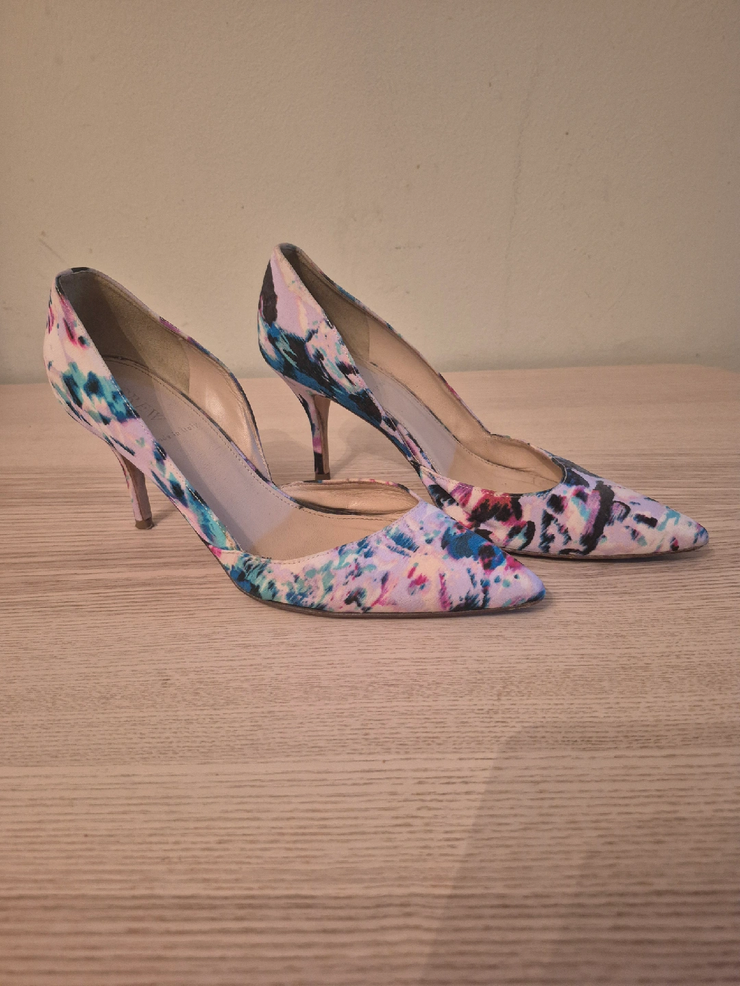 Selling a pair of J.Crew heels with a fun water colour pattern! They're a size 7 and have been gently used. Perfect for adding a pop of colour to your outfit! Smoke and pet free home.