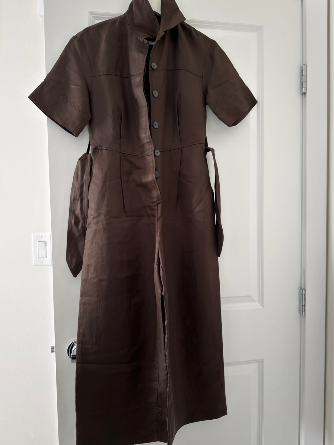Selling a Massimo Dutti jumpsuit in a trendy color of 2025 - brown! It's a size 2 or EU 34 and made from a blend of 42% viscose, 33% linen, and 25% lyocell. Perfect for a stylish and comfortable outfit! Condition: worn once + tried in front of the mirror couple of more times ๐