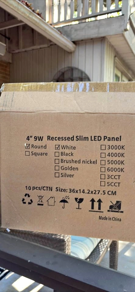 Round recessed lighting. Box of 10. 8 remaining all in original packaging.