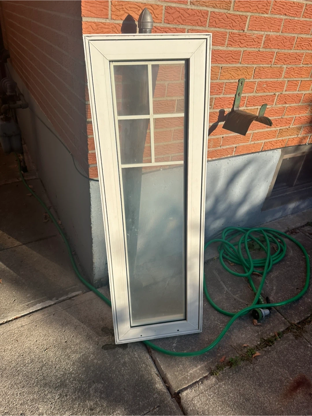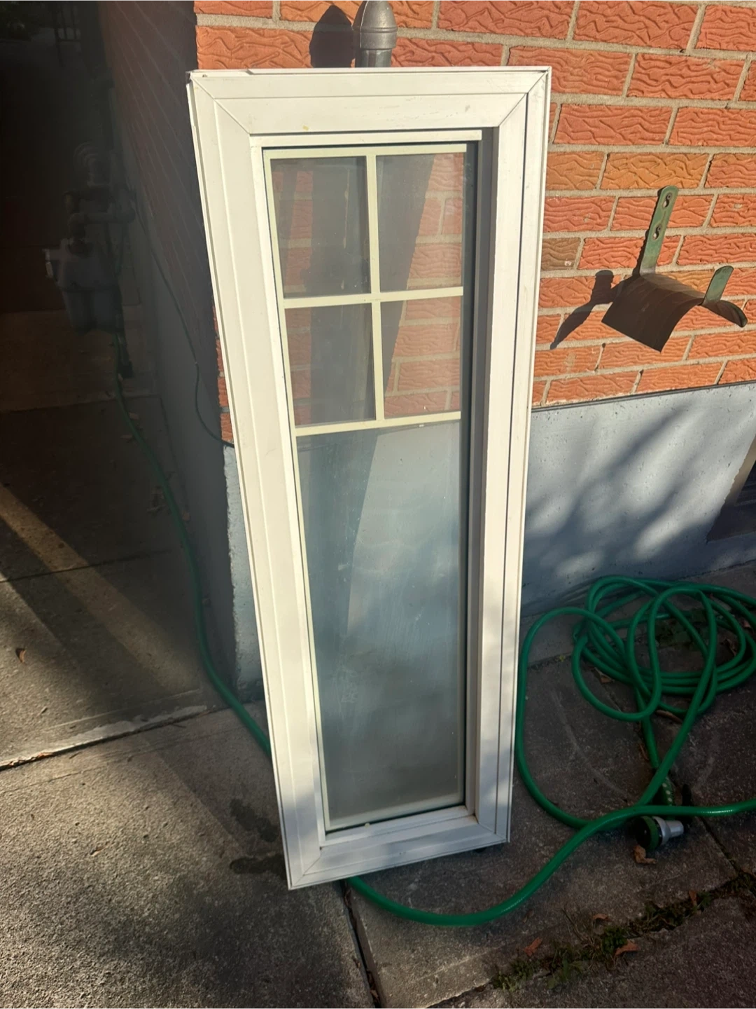 Selling a white framed vinyl window. It's in good condition and ready for a new home. Perfect for renovations or new construction projects. Width 18 inches (17 5/8) Height 54 inches (53 3/4)