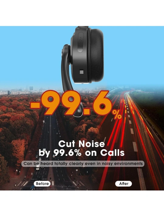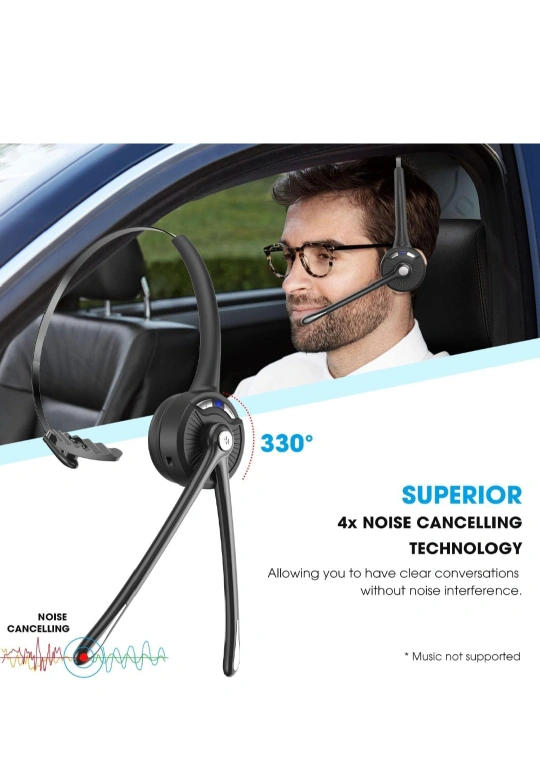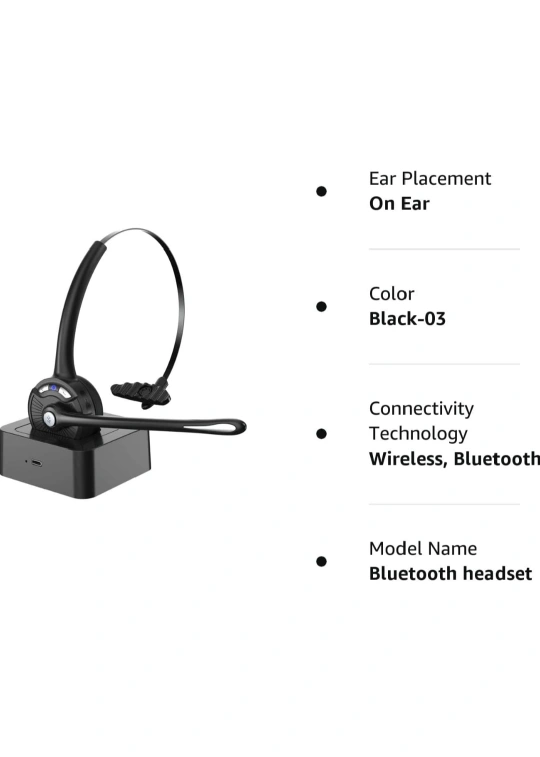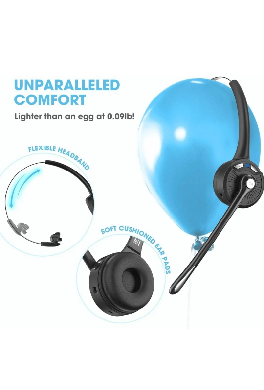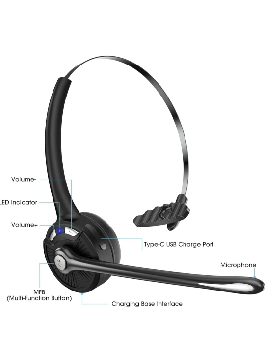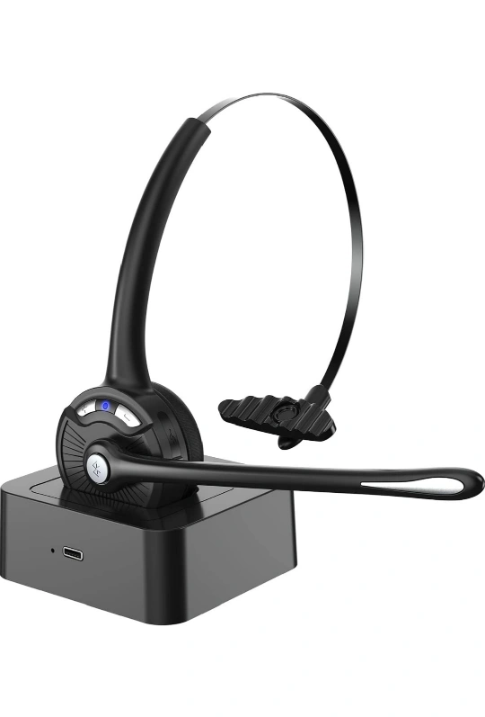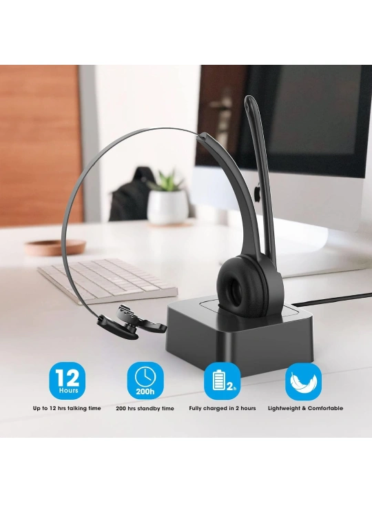 Caymuller Bluetooth Headset with Microphone, Noise Canceling Wireless On Ear Headphones, Headphones Mic Charging Base, Phone Mute Button for Laptop, Skype, Call Centers, Office, Trucker.