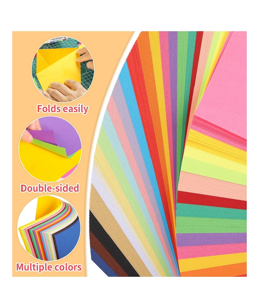 Coloured Origami Paper 1100 Sheets, 15×15cm 70gsm 25 Bright Colors – 6 Inch Double-Sided Square Folding Paper.