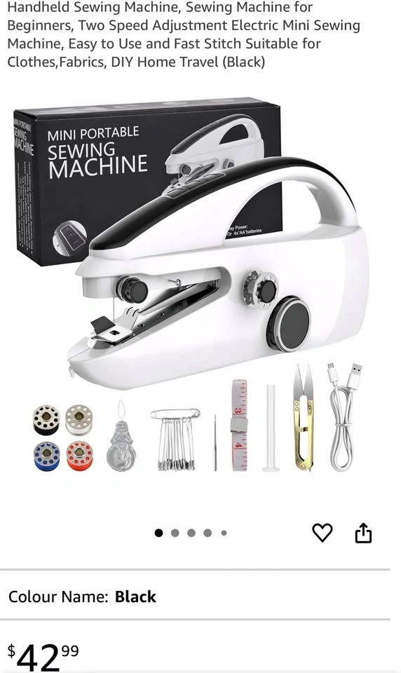 New, open box, Handheld Sewing Machine, Sewing Machine for Beginners, Two Speed Adjustment Electric Mini Sewing Machine, Easy to Use and Fast Stitch Suitable for Clothes, Fabrics, DIY Home Travel (Black) Retail for $42.99 on Amazon Asking $20 Pickup near Coxwell and Danforth