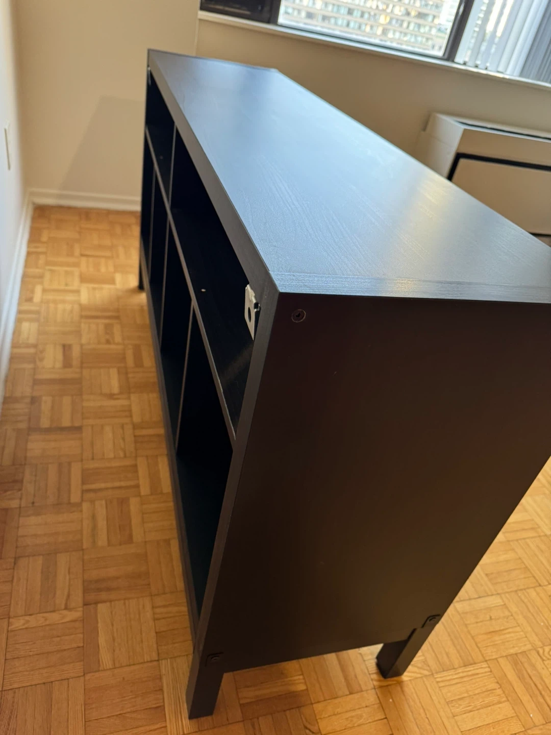 PICK UP ONLY See photo slides for dimensions. Selling a black IKEA Kallax shelf unit. It's in great shape and ready for a new home! Perfect for organizing books, toys, or displaying your favourite items. This unit is super versatile and can fit into any room. Get organized with this stylish and functional piece!