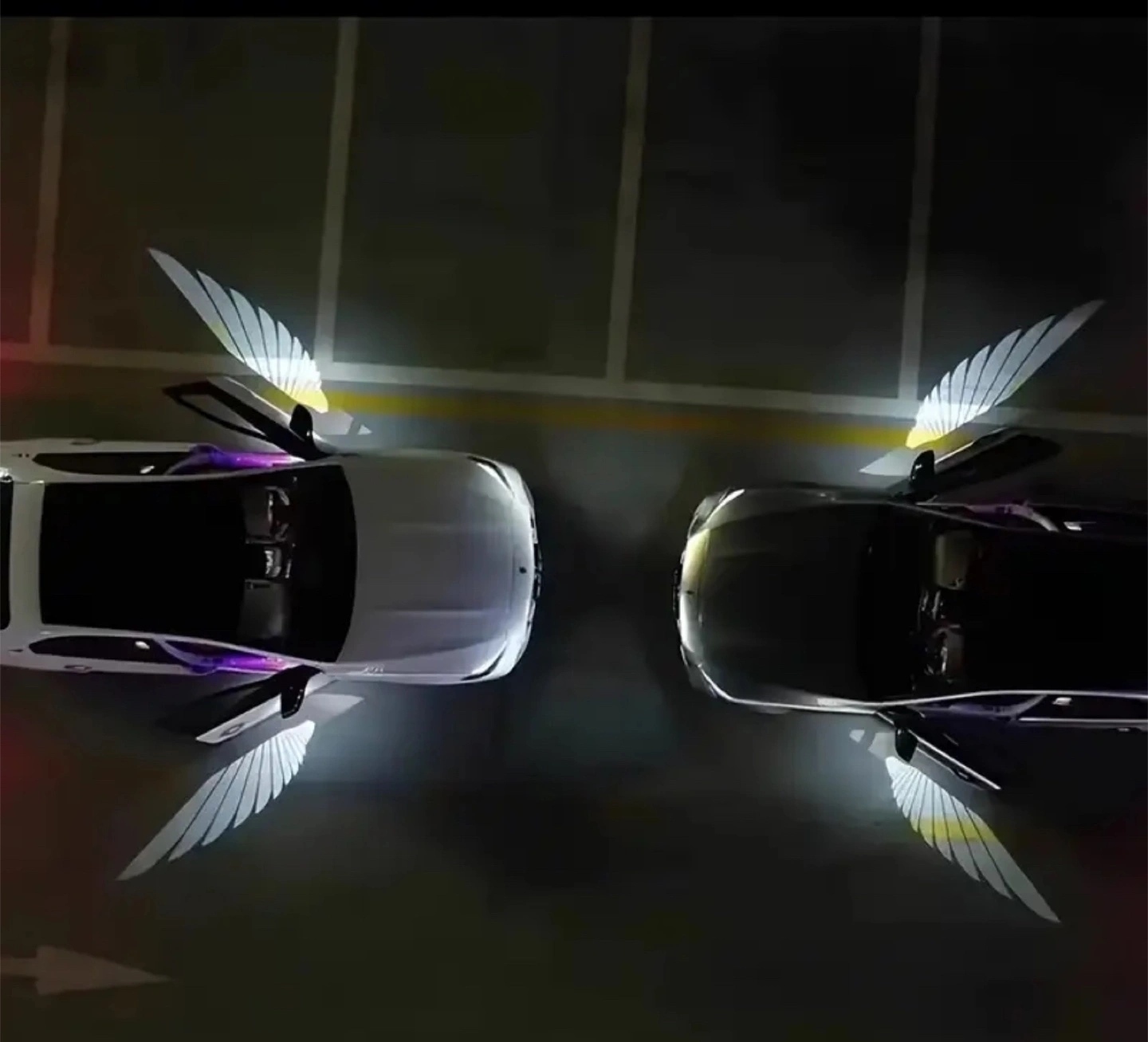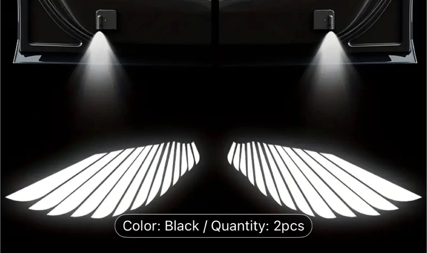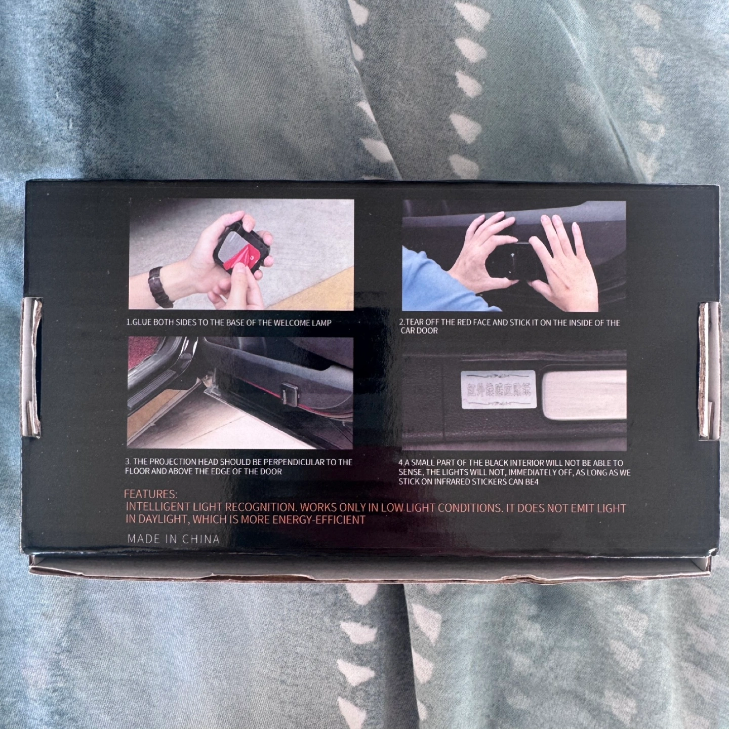 Car door LED light projectors displays “wings” when the door opens. They are brand new and come in the original box. Features intelligent recognition for light activations (works only in low light conditions for stepping out of the vehicle, and they do not emit light in daylight, which is more energy-efficient to save battery power for long term use). Easy installation and battery operated. Purchased for 15$ selling for 10$