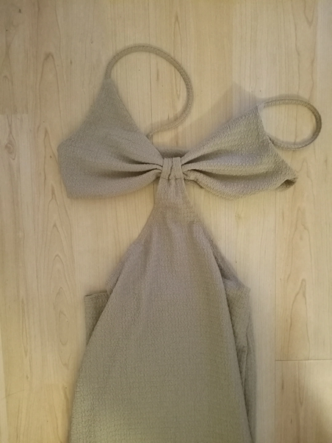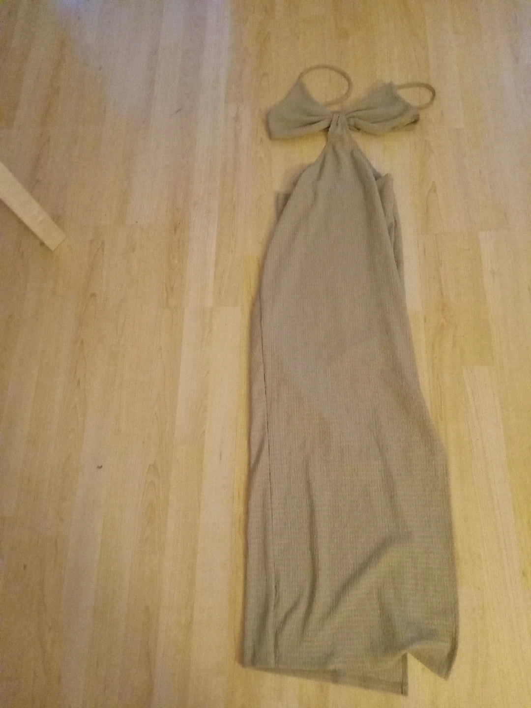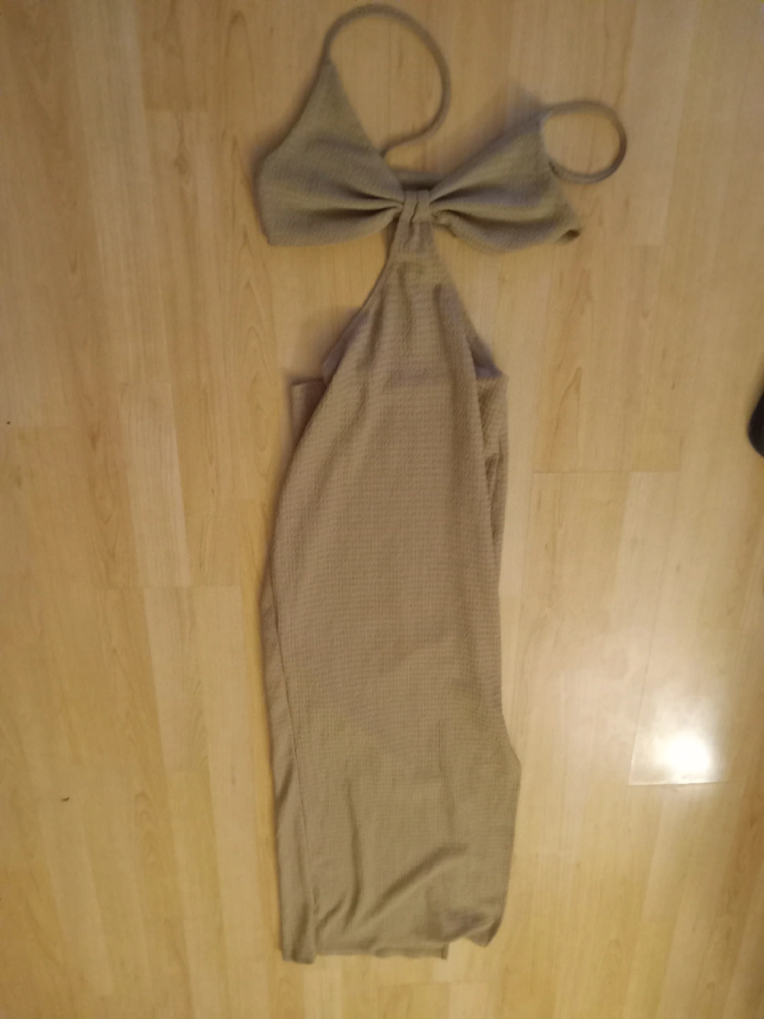 Selling a beige halter dress in great condition! It's a stylish and comfortable piece that would be a great addition to your wardrobe