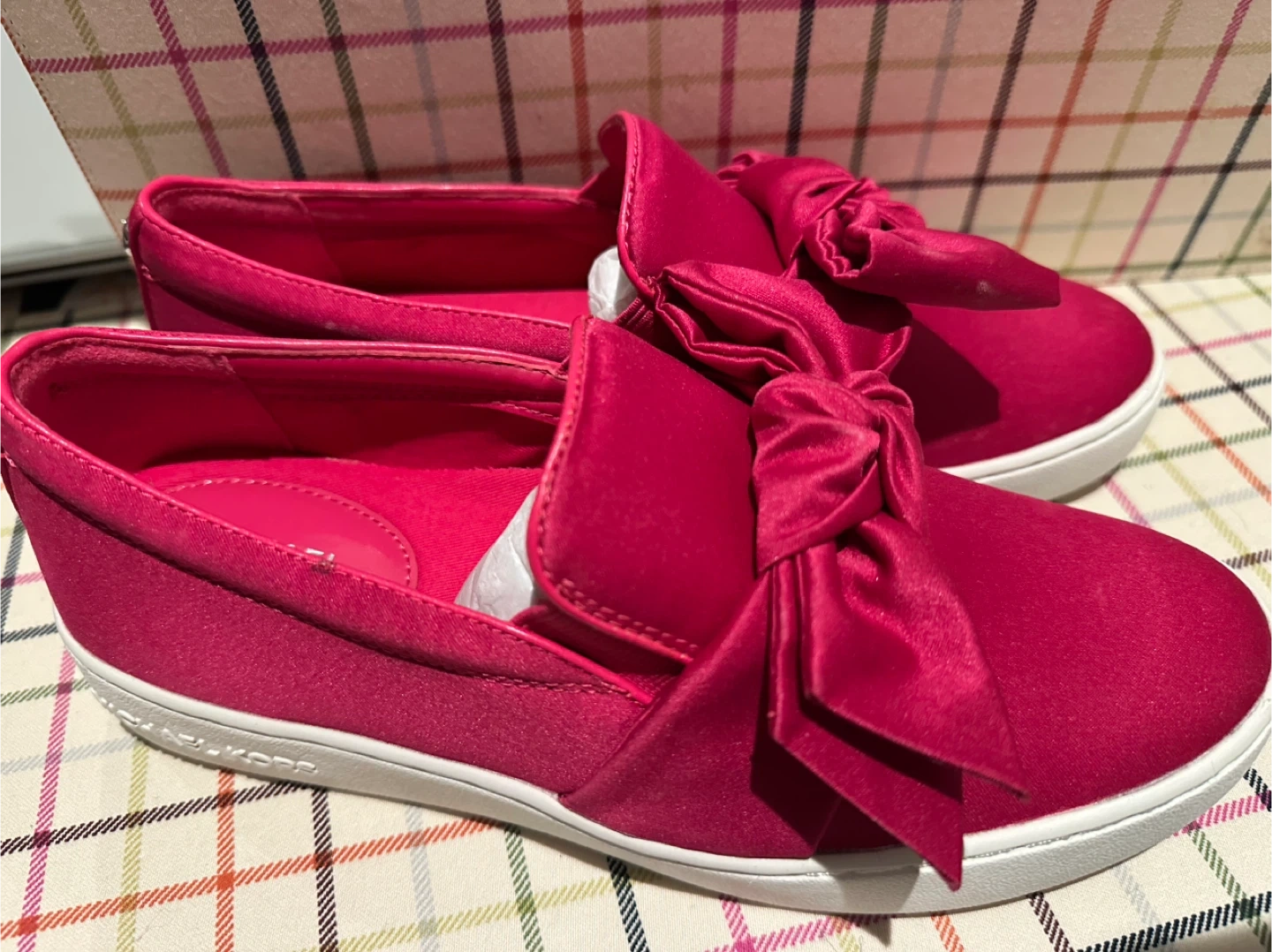 These Michael Kors slip-on sneakers are a vibrant pink colour and feature a cute bow detail. They're in great condition and ready for a new home! Perfect for adding a pop of colour to any outfit Very good condition