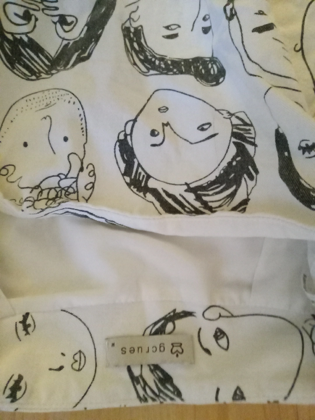 This is a skirt from Gcrues with a unique face print. It's in great condition and ready for a new home