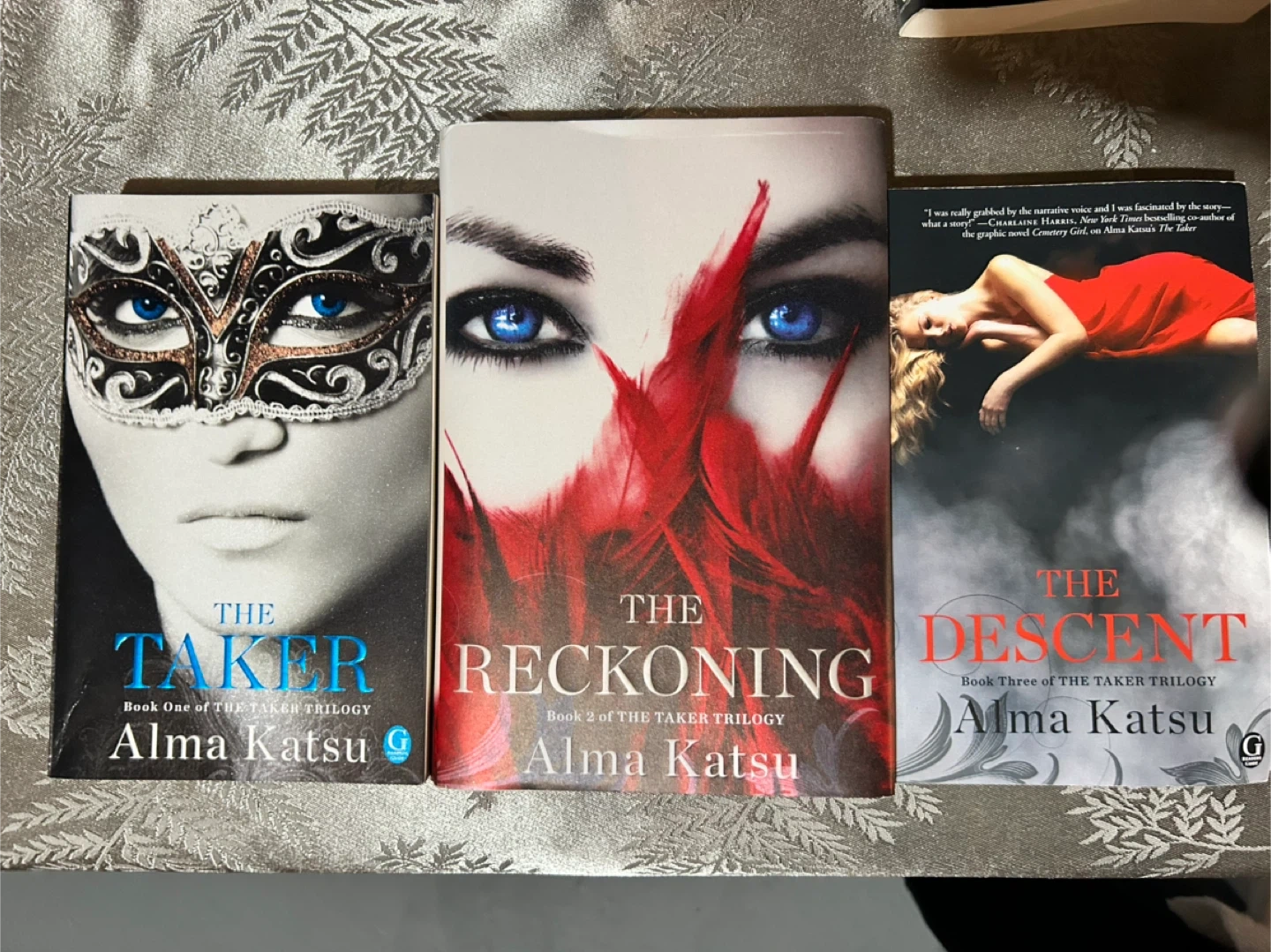Selling the complete Taker Trilogy by Alma Katsu! Includes: - The Taker (Book One) - The Reckoning (Book Two) - The Descent (Book Three) If you enjoy a story that is really grabbed by the narrative voice, this is it!